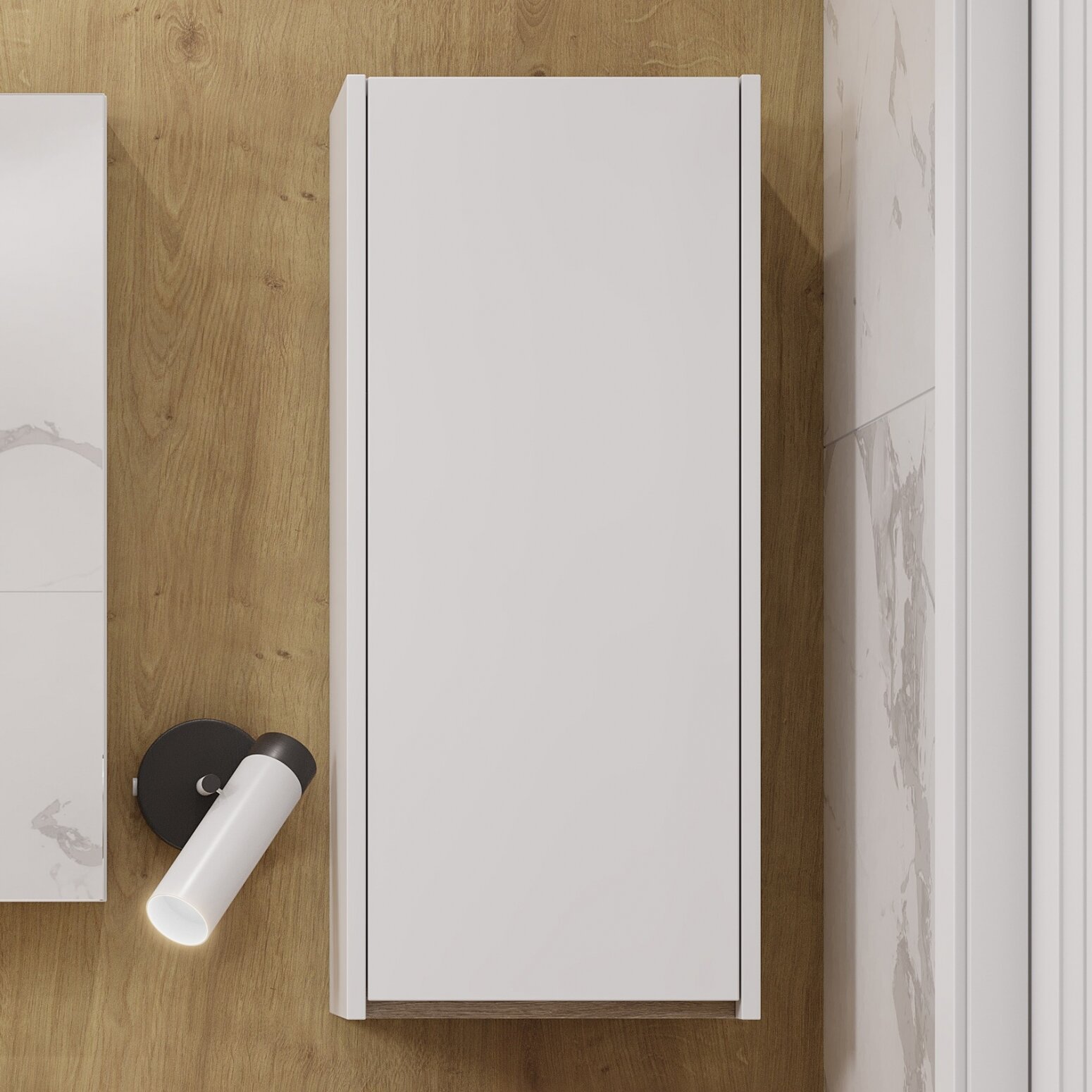 Подвесной шкаф Акватон Марти белый/дуб эндгрейн. Дополнительное место для хранения можно получить благодаря подвесным модулям, выполненным в дизайне коллекции.