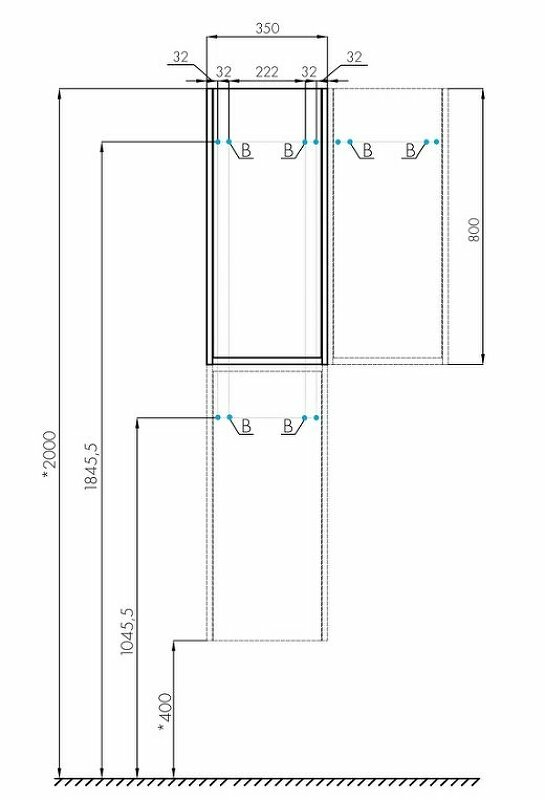 - Размеры (ШхВхГ): 350х800х230 мм.
