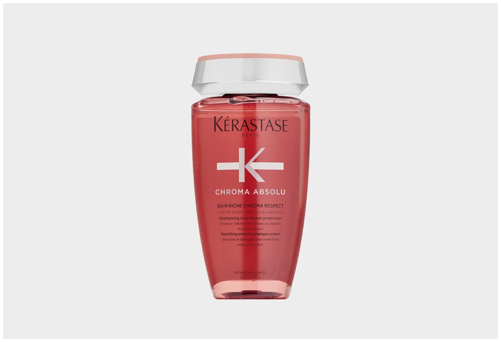 Bain Riche Chroma Respect — это насыщенный питательный и защитный шампунь для всех типов сенсибилизированных или поврежденных окрашенных волос. Лучше всего подходит для толстых волос и волос средней толщины.