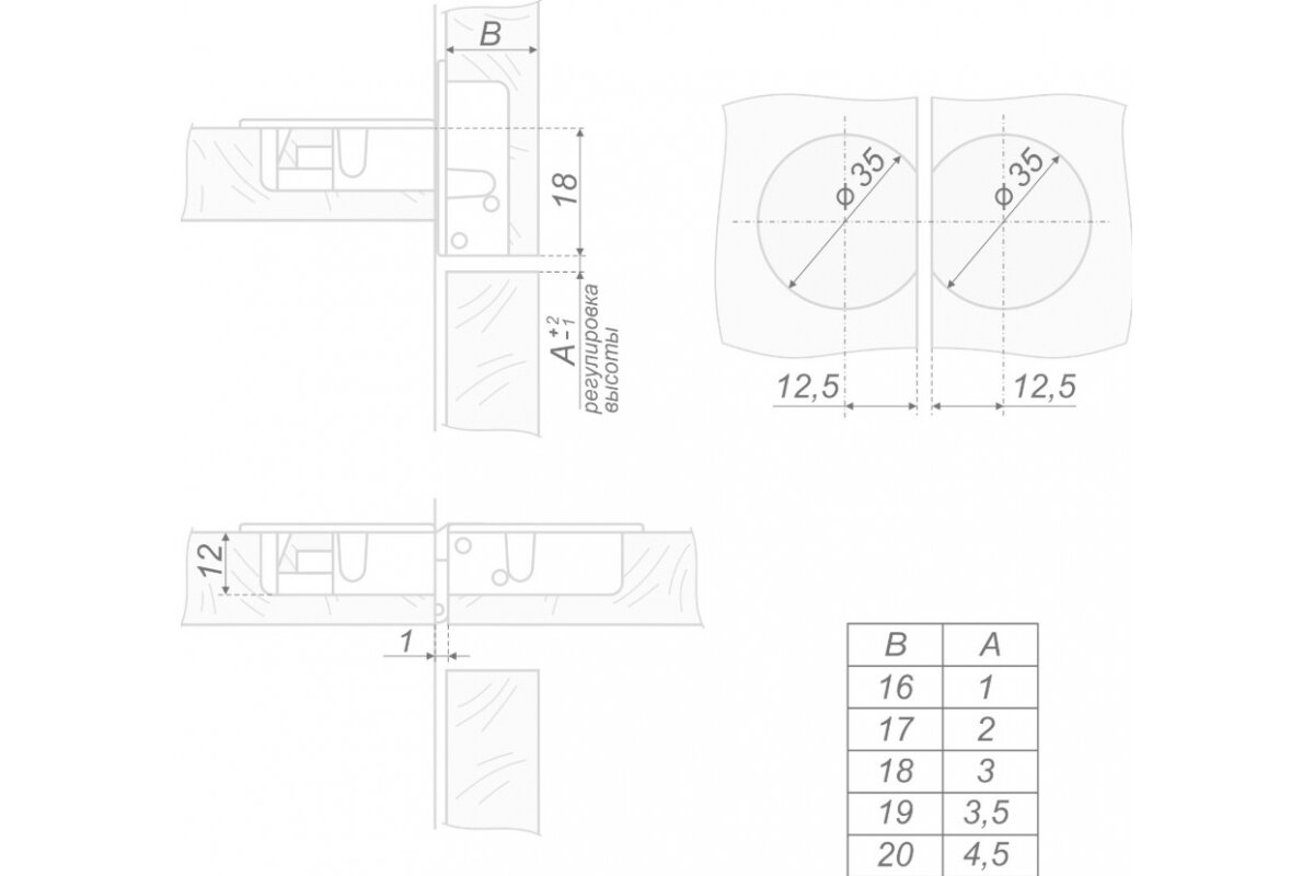 | Диаметр чашки петли | 35 мм |