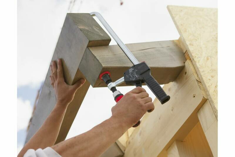 Сертифицированная струбцина торговой фирмы Bessey применяется для сжимания и удерживания разного рода конструкций и заготовок с целью их обработки, склейки, опила, сверления, а также для прочих манипуляций при столярных, монтажных, сантехнических и прочих типах работ. Зажимная часть струбцины выполнена из первоклассного материала (цельный металл), который позволяет пользоваться инструментом при высоких нагрузках. Благодаря улучшенному профилю штанги 19,5 x 9,5 мм, широкому зажиму 300 мм и прочной на излом опорной поверхности длиной 100 мм достигается надежный зажим с усилием до 3500 Н. Безопасная эргономичная двухкомпонентная рукоять гарантирует надежный хват элементов одним движением руки. Особенностью данной модификации является возможность проводить работы одной рукой.