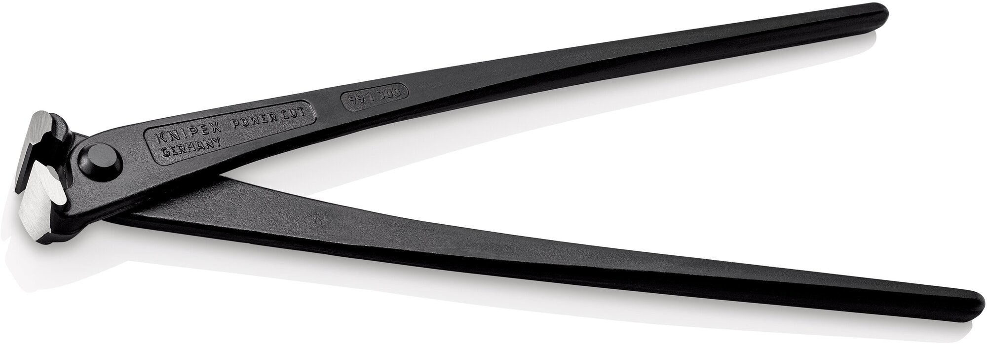 | Прочие особенности и свойства | Арматурные клещи особой мощности KNIPEX KN-9910300 применяются для фиксации арматурной стали вязальной проволокой. Длинные рукоятки и близкое расположение режущих кромок к шарниру позволяют достигнуть 25 % экономии усилий по сравнению с обычными арматурными клещами. Твердость режущих кромок составляет 61 HRC. ,Ширина головки 25 мм |