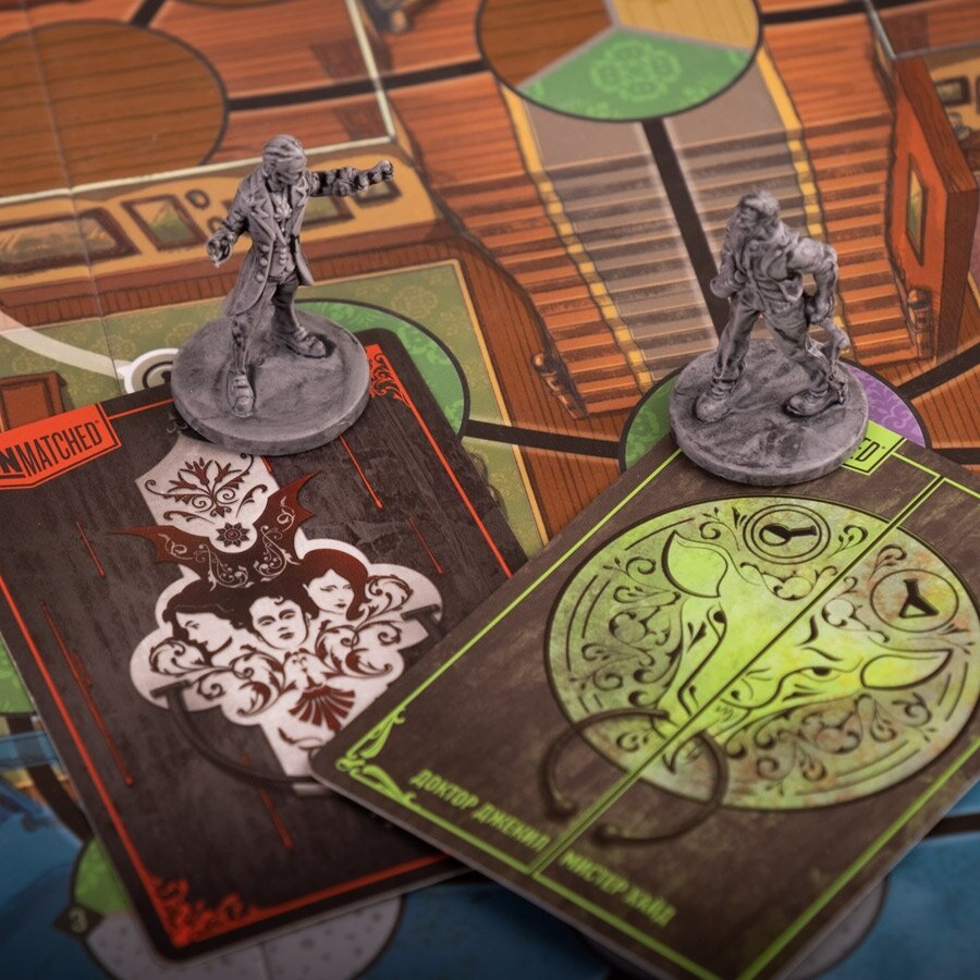 В новой игре серии Unmatched нас переносит в таинственную атмосферу городских легенд и литературных персонажей викторианской Англии. В игре вам повстречаются: Граф Дракула - легендарный румынский вампир, один взгляд которого способен поработить ваш разум, а также три его кровожадные невесты; Доктор Джекилл - гениальный ученый, превращающийся в ужасного и безумного мистера Хайда; Человек-невидимка - ученый, чьим проклятьем и одновременно даром стала абсолютная невидимость; а также несравненный Шерлок Холмс в дуэте с верным помощником доктором Ватсоном - все-таки, кто-то должен приглядывать за всеми этими созданиями.