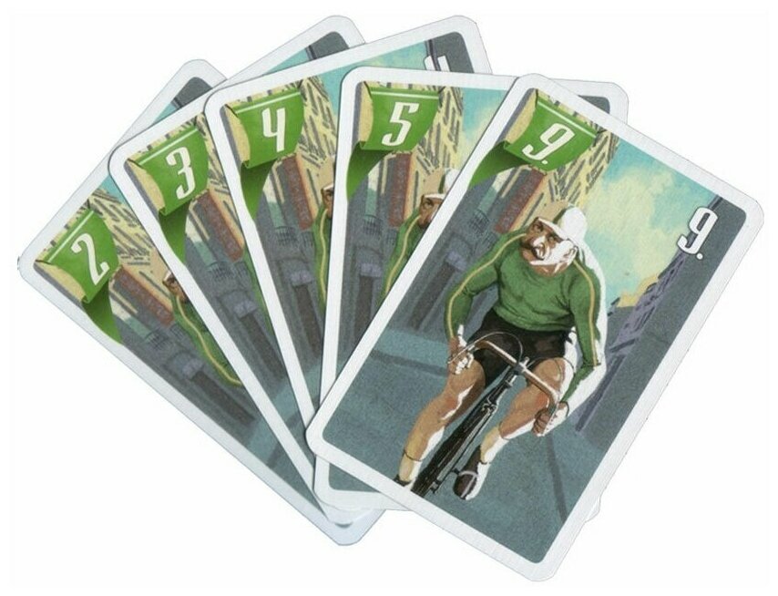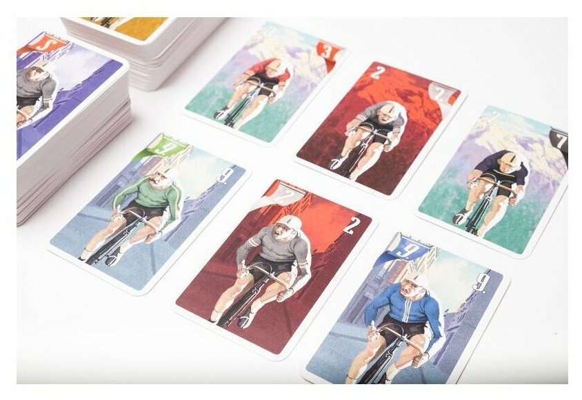 | Комплектация | планшет игрока - 4 шт; фигурка велогонщика - 8 шт; участок велотрассы - 21 шт; карта - 187 шт; правила |