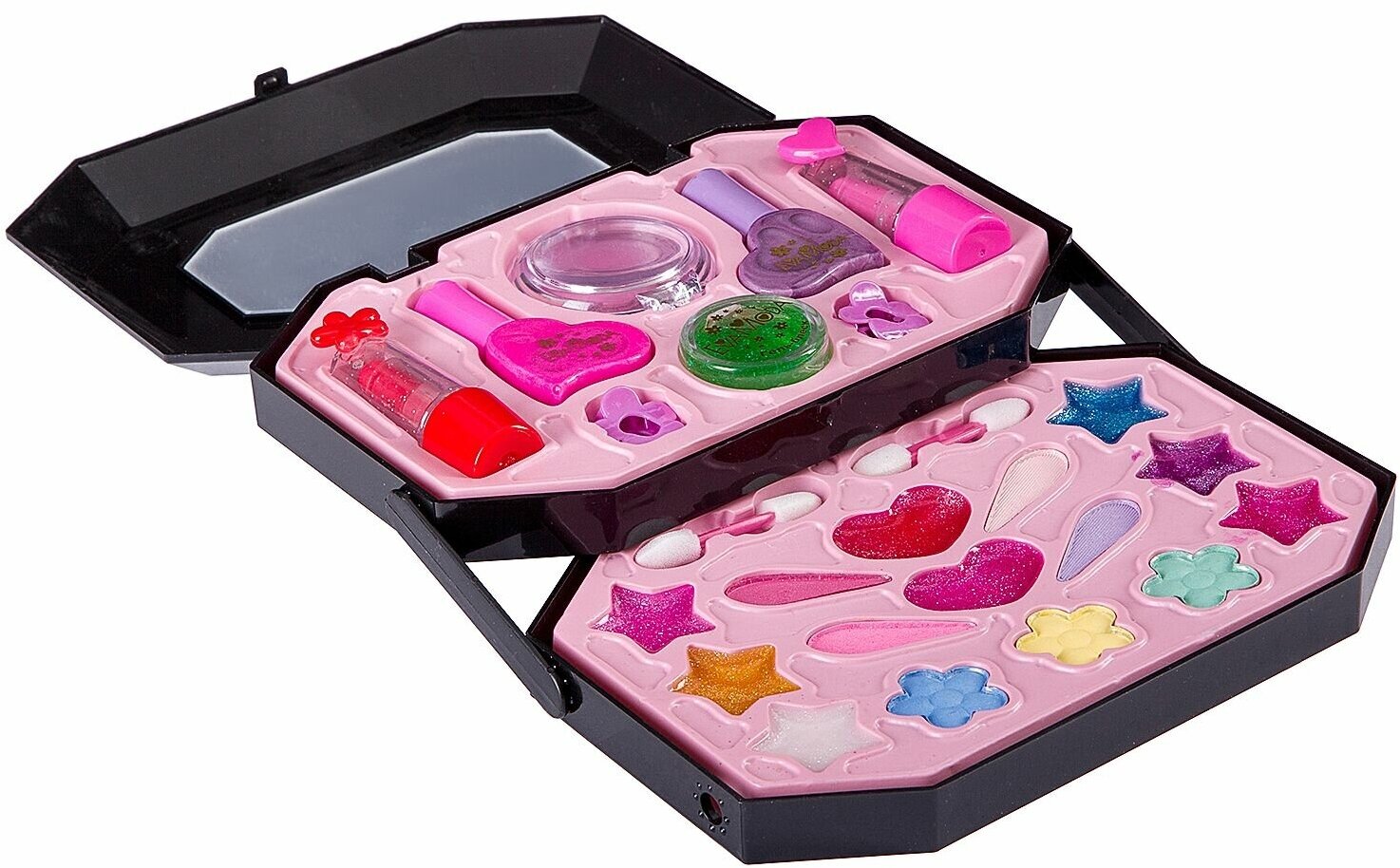 "Косметичка-сундучок" создан специально для маленьких красоток, которые с детства хотят быть похожими на своих стильных мам. Теперь есть возможность сделать красивый макияж, используя собственный набор декоративной косметики. Оригинальный корпус-сундучок и красивая упаковка делают набор отличным подарком. Двухъярусная шкатулка не оставит равнодушной ни одну модницу.