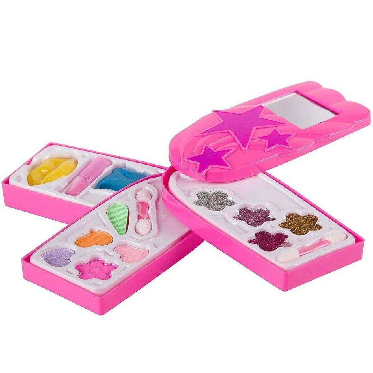 Удивительный кейс в форме телефона - очень стильный и, не смотря на свои компактные размеры, содержит все, что нужно для маленькой модницы! В этом симпатичном и удобном наборе спрятаны 3 яруса, где есть всё необходимое для создания креативного макияжа.