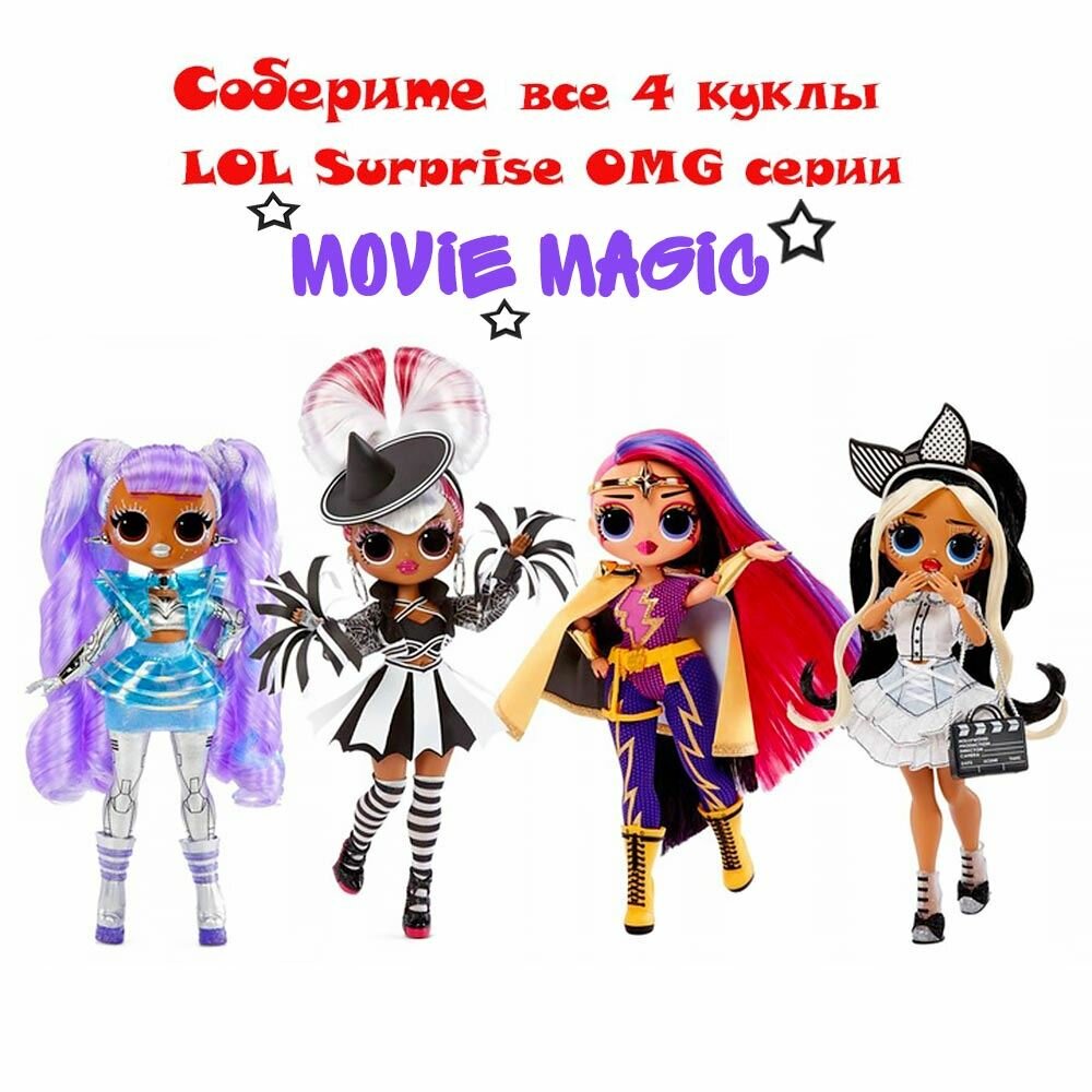 Погрузитесь в магию кино с новой серией кукол L.O.L. Surprise OMG - Movie Doll. Кукла Ms.Direct – звезда с уникальными образами и игровым пространством, а также личным сценарием. Узнайте её историю!