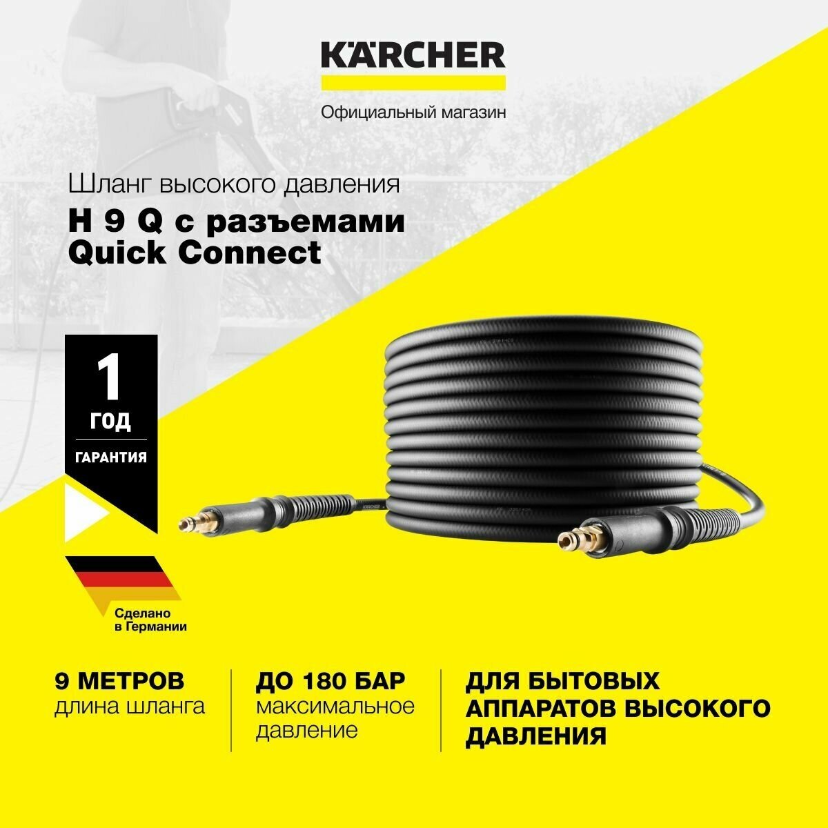 Шланг высокого давления с системой Quick Connect H 9 Q. Шланг высокого давления легко подключается к аппарату и пистолету - всего одним щелчком. Это бережет Ваше время и усилия. Система Quick Connect для простой очистки. Длина шланга составляет 9 метров, а вес всего 0,85 кг..