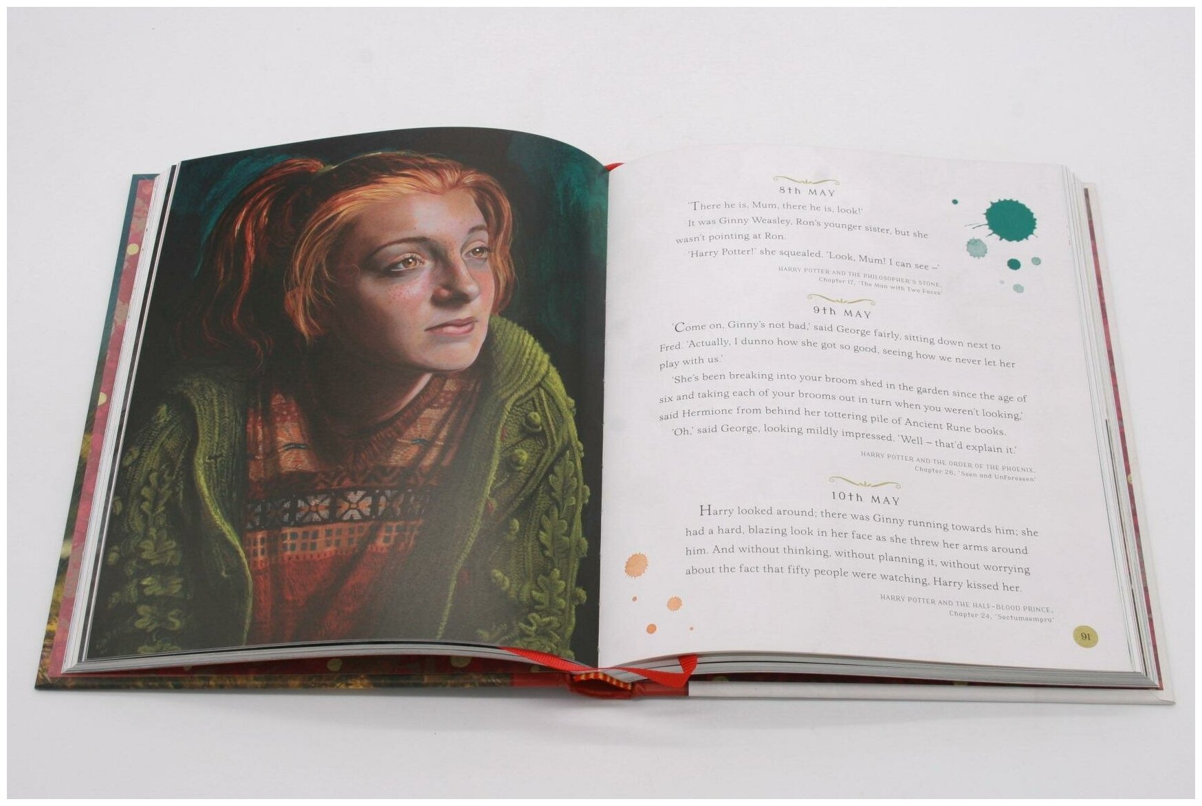 Книга в твердой обложке софт-тач с безумно красивым изображением Хогвартс-Экспресса, если не ошибаюсь, иллюстрация взята из Кубка огня. Толстые глянцевые страницы, качественная бумага. Изображения отсортированы по принципу календаря, к каждому подобрана цитата из романов Роулинг, которая описывает происходящее на страницах. В принципе, почти все изображения можно найти в иллюстрированных изданиях в таком же хорошем качестве ( хотя я и обнаружил несколько оригинальных скетчей, которых там не было), но если у вас ограничен бюджет или интересует исключительно изображения, то это тоже неплохой вариант. Взял себе в коллекцию английскую версию, и доволен как слон.