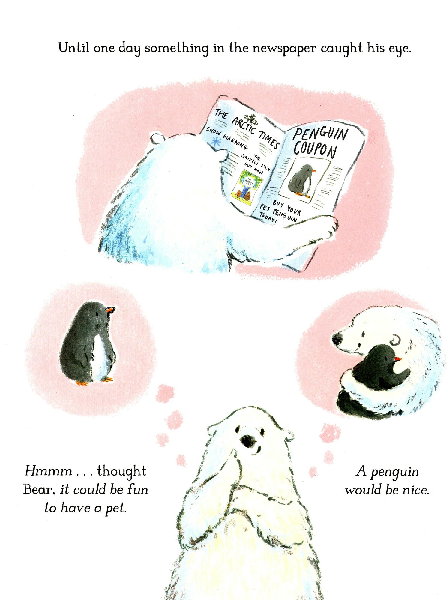When Polar Bear spots a Penguin Coupon in the newspaper, he wastes no time in ordering his very own pet. He's thrilled with his new friend, but Penguin doesn't seem quite as pleased (though it's hard to tell - he's not very chatty). As time goes on, Penguin becomes more and more despondent, and Polar Bear knows he has to do something to fix it. And that something involves a very long journey. . .