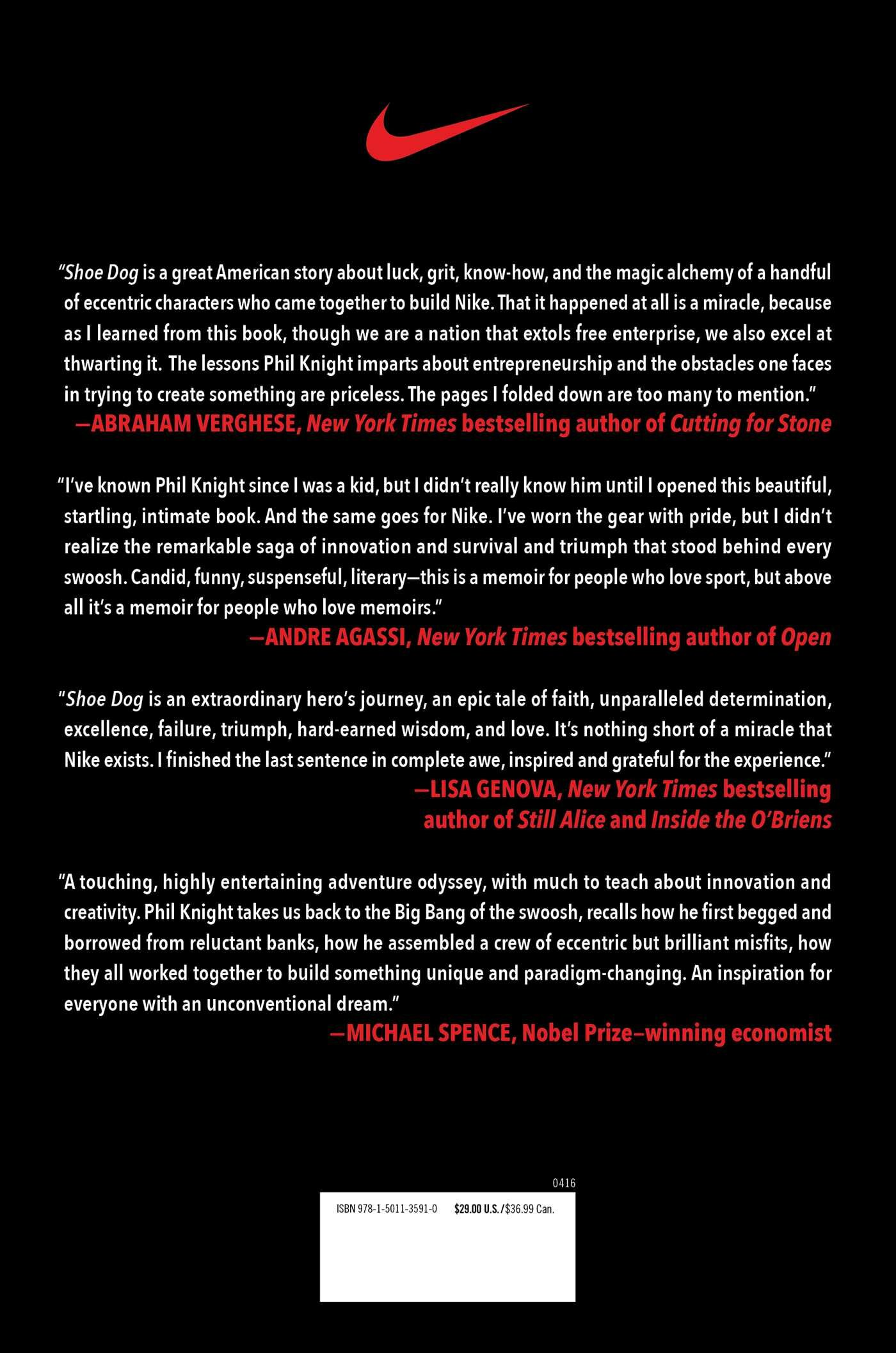 In 1962, fresh out of business school, Phil Knight borrowed $50 from his father and created a company with a simple mission: import high-quality, low-cost athletic shoes from Japan. Selling the shoes from the boot of his Plymouth, Knight grossed $8000 in his first year. Today, Nikes annual sales top $30 billion. In an age of start-ups, Nike is the ne plus ultra of all start-ups, and the swoosh has become a revolutionary, globe-spanning icon, one of the most ubiquitous and recognisable symbols in the world today.