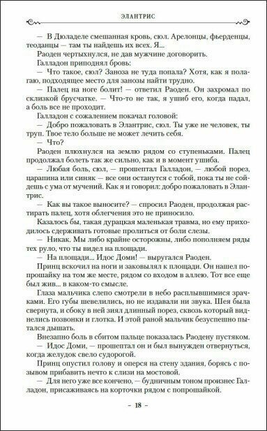 Вечность закончилась десять лет назад. Прекрасный город пал, а благословение шаода обернулось проклятием. Новая столица Арелона, маленький Каи, живет в тени черных стен Элантриса, стараясь не замечать города, ставшего резервацией для тех несчастных, кого по-прежнему забирает шаод. Но очередной жертвой оказывается Раоден, наследный принц Арелона…