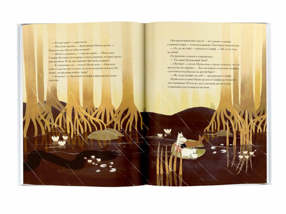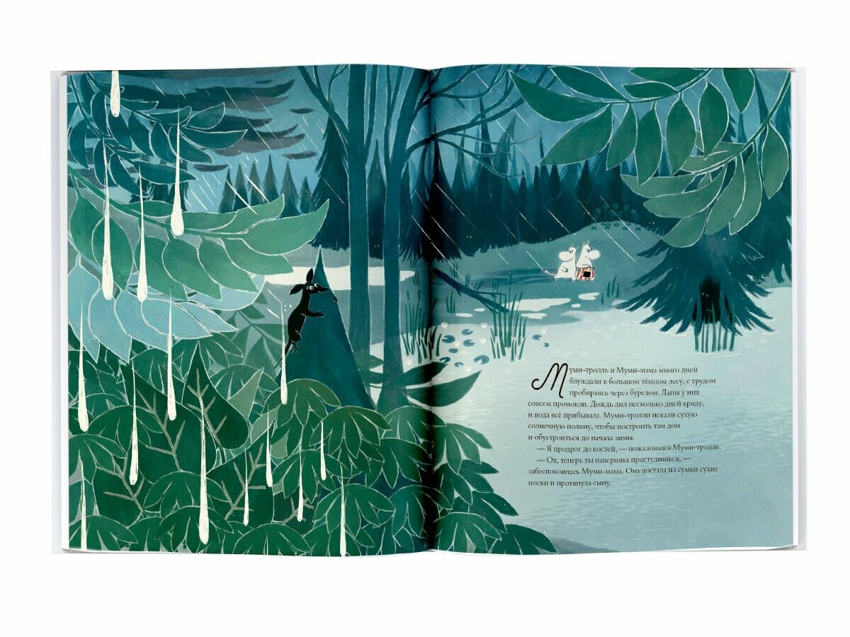 Дождь лил уже несколько дней. Муми-тролль и Муми-мама блуждали в тёмном лесу в поисках подходящей поляны, чтобы построить дом и устроиться до начала зимы. И, конечно же, они надеялись повстречать где-нибудь в чаще Муми-папу...