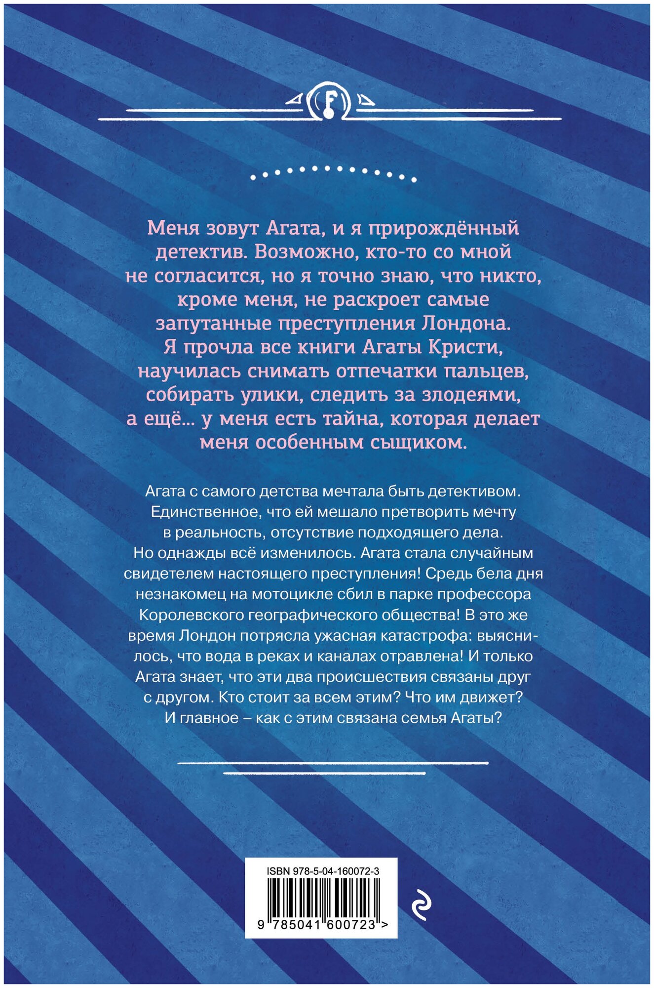 Не зря в названии первым словом идёт "ДЕТЕКТИВное.." Когда читала первые 20-30 стр было не так увлекательно, не за что зацепиться, но в 3 главе (37 стр) поставили точку, после которой как раз и наступило начало истории, новый абзац так сказать. С этого момента сюжет стал стремительно развиваться. Читаешь на одном дыхании, не зная, что же будет дальше. Иногда есть ожидаемые моменты, но это можно в многих книгах встретить. Познакомилась с этой книгой благодаря подруге, она решила подарить мне на день рождения её, но почему-то вторую часть и мне пришлось покупать первую ;-; В общем книга понравилась, подойдёт всем как написано в описании от 12 лет, максимум может просто жанр не понравиться.