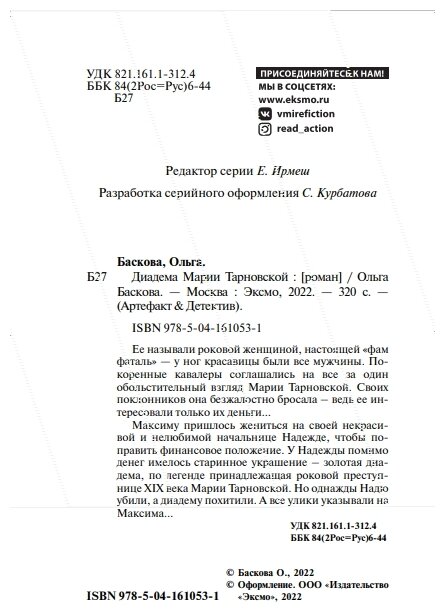 Книга: Диадема Марии Тарновской (Баскова Ольга); ООО "Издательство "Эксмо", 2022