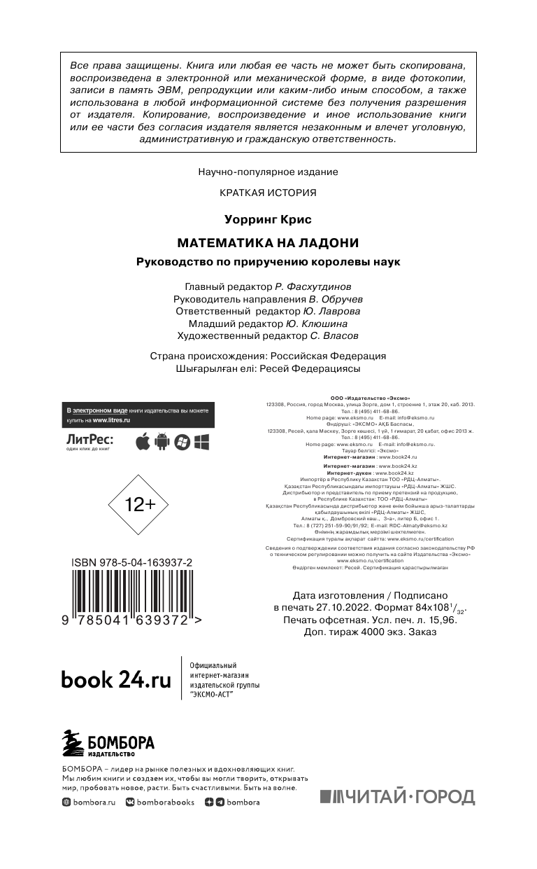 Сервис сравнения цен СкидкаГИД предлагает сравнить цены на товар «Книга: Математика на ладони. Руководство по приручению королевы наук. 2-е издание (Крис Уорринг); Эксмо, БОМБОРА, 2022»