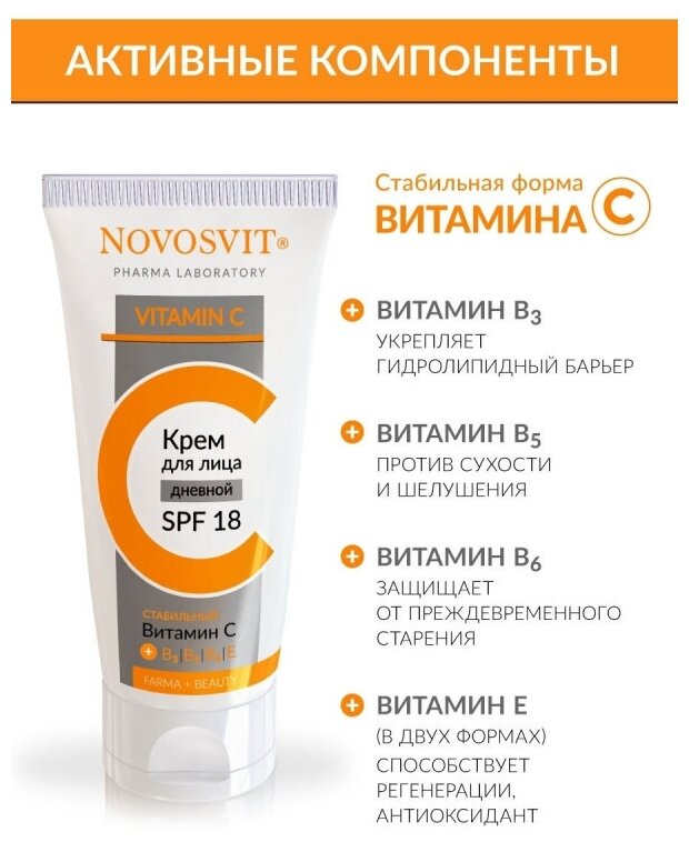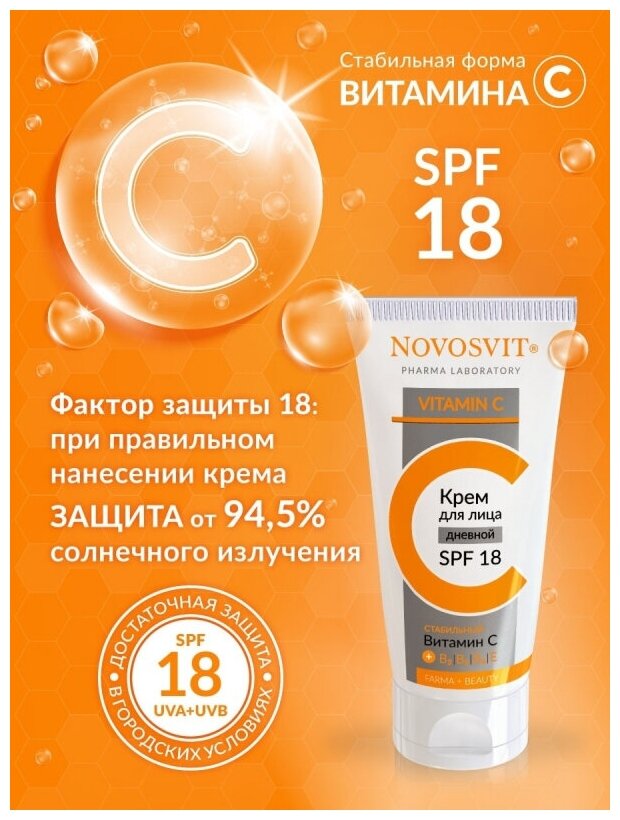 Крем для лица cтабильный витамин C SPF18 Novosvit/Новосвит 50мл Народные Промыслы ООО (573297)