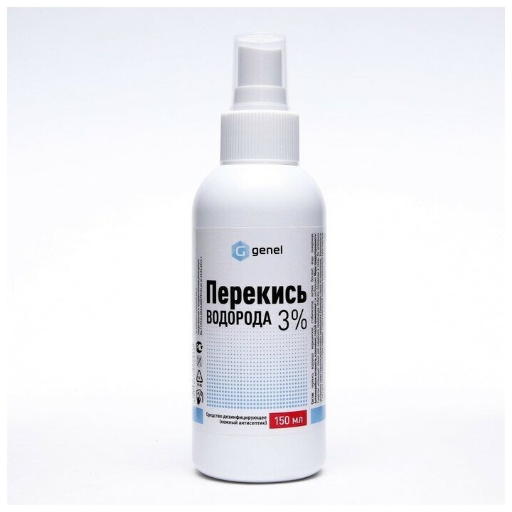 О товареПерекись водорода 3% и 6% широко используется в медицине как кожный антисептик для взрослых и детей, антибактериальное средство и дез. средство для поверхностей. Ее применяют:* Для обработки ран, царапин, ссадин, остановки кровотечений, как гемостатик* Перекись обладает антисептическими свойствами и помогает предотвратить инфекцию, уничтожает грибок* Используется для очистки инструментов, для перевязок и повязок на рану, перед наложением кровоостанавливающего венозного жгута* Подойдет в машину в автомобильную аптечку, в том числе и как санитайзер для рук, антисептик для рук детский* Используется в косметике для отбеливания зубов, обесцвечивании волос* Обладает свойством тормозить процессы старения, укреплять и очищать кожу, часто небольшое количество добавляют в лосьоны или кремы от прыщей, акне, угрей* В стоматологии применяется при лечении стоматита, гингивита, пародонтита, удаления бактериального налета на зубах и пигментных пятен на эмали, помогает продезинфицировать лунку после удаления зуба* В быту перекись используется в качестве отбеливателя и пятновыводителя для одежды и обуви, обработки инструментов маникюра и педикюра, индивидуальной экипировки и снаряжения для туризма, кемпинга и отдыха на природе, обработки пищевых продуктов, а также для очистки и обеззараживания воды* Для дезинфекции и очистки поверхностей и различных предметов, полезна для приготовления дезинфицирующих растворов, жидкости, удаления загрязнений, ржавчины и плесени с поверхностей и обеззараживания санитарных объектов, ухода за бассейном и чистки бассейна от водорослей и вместо химии или альгицида (в зависимости от концентрации и объема бассейна используется перекись 60%, 37%, 30%, 3%, 6%).* Она может быть использована для очистки очков, ухода за кожей, снятия кутикулы, обезжиривания кухонной посуды, мебели и автомобильных запчастей. Также перекись водорода может использоваться для удаления стойких пятен и запахов.Особые указания:Использовать только для наружного применения. При случайном попадании средства в желудок рекомендуется выпить несколько стаканов воды с добавлением адсорбента (например, 10-15 измельченных таблеток активированного угля на стакан воды). Рвоту’ не вызывать. При необходимости обратиться за врачебной помощью.Условия хранения:Хранить в плотно закрытой упаковке производителя при температуре от 0°С до +30°С; вдали от источников тепла и возгорания; избегать хранения на прямом солнечном свете. Не курить! Хранить отдельно от лекарств в местах недоступных детям.