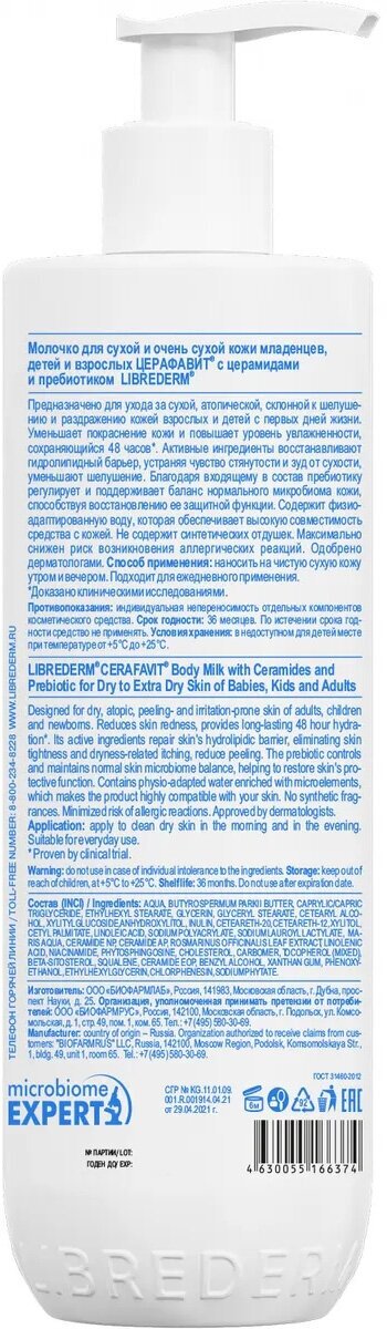 Молочко для сухой и очень сухой кожи младенцев детей и взрослых Librederm/Либридерм Cerafavit 200мл ООО "БИОФАРМЛАБ" (1115627)