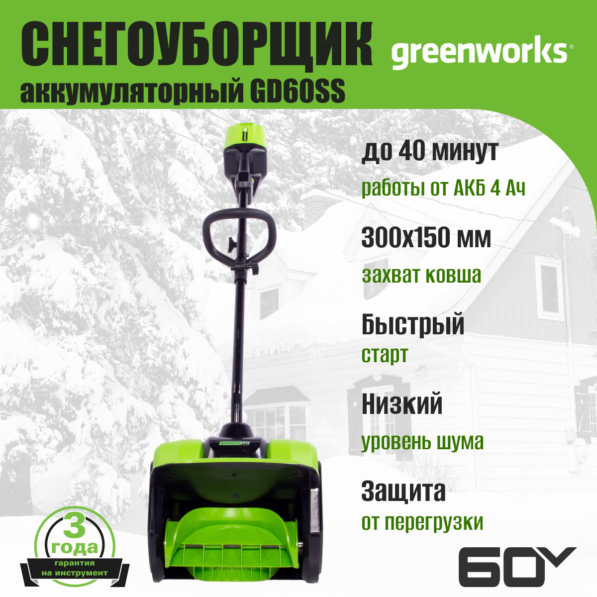 Снегоуборщик аккумуляторный Greenworks 60 вольт (арт. ) - Новая, компактная модель бесщеточного снегоуборщика 60В. Станет отличным дополнением к вашей коллекции устройств 60В. Новинка имеет компактный размер и предназначена для облегчения уборки территорий от снега.