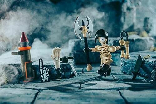 Коллекционная фигурка Скелета в военном обмундировании, с 8 аксессуарами из компьютерной игры Roblox, c отличной детализацией и шарнирными точками артикуляции, позволяющим принимать боевые позы.