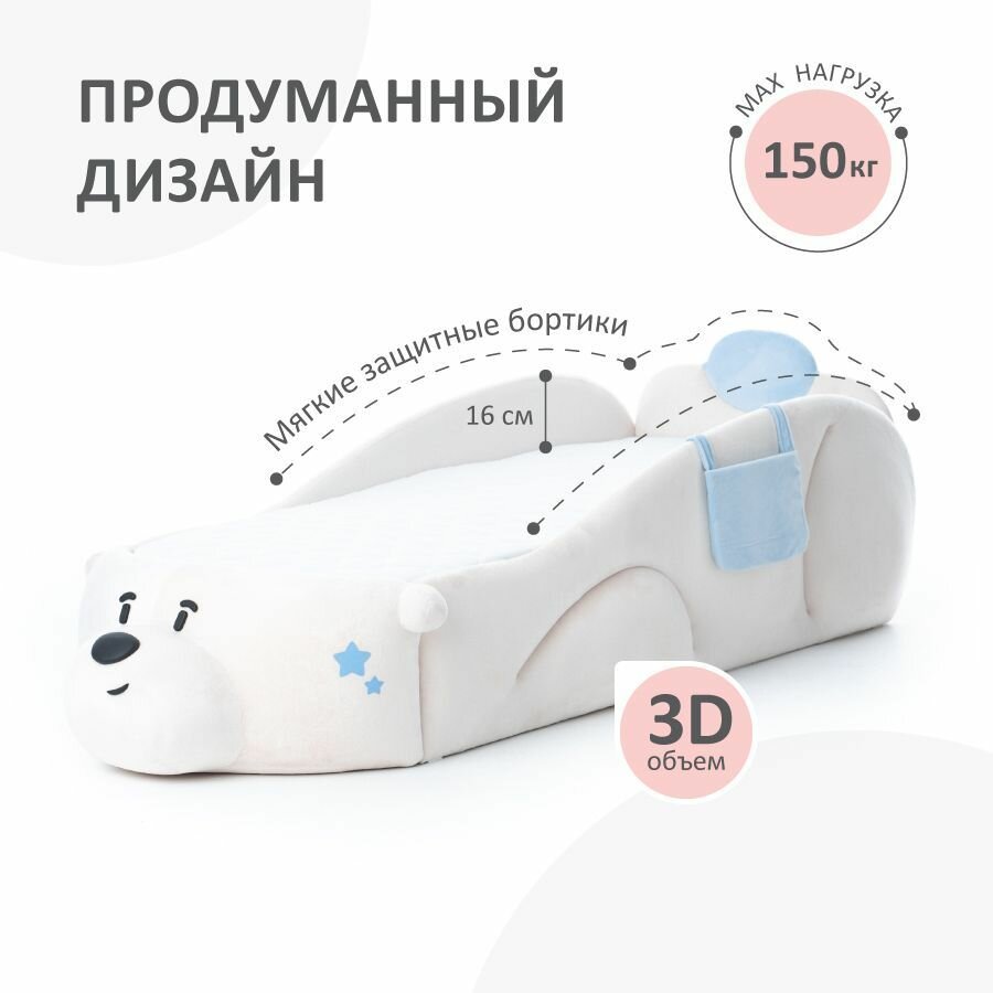 Подойдёт для детей от 2 лет - высокие закруглённые мягкие борта обеспечат безопасность ребёнка во время сна.