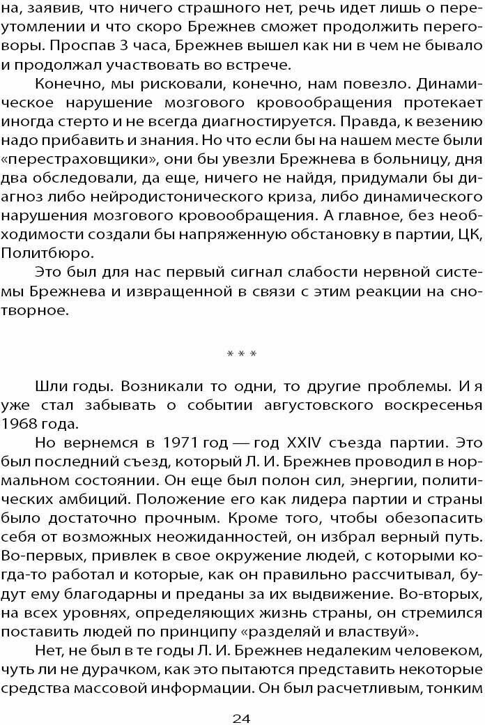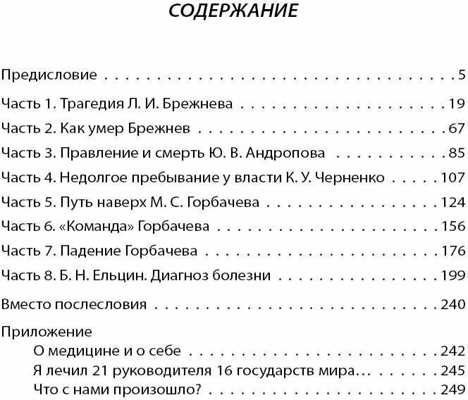 Евгений Иванович Чазов в течение двадцати лет (с 1967 по 1986 г.) возглавлял 4-е Главное управление при Минздраве СССР, которое обслуживало высших руководителей Советского Союза. Именно в это время состоялся так называемый "хоровод смертей", когда один за другим умерли три Генеральных секретаря ЦК КПСС (Брежнев, Андропов, Черненко). Е.И Чазов по долгу службы обязан был знать все о состоянии здоровья и причинах смерти своих подопечных; в своей книге он рассказывает, как уходили из жизни советские вожди, приводит подробности их последних дней. Особое место уделяется кончине Л.И. Брежнева, о которой по сей день ходит множество слухов.
