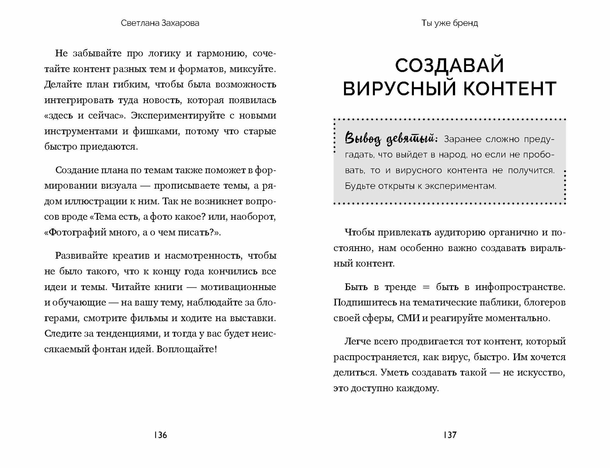 Можно ли развивать личный бренд в социальных сетях сегодня, в условиях дикой конкуренции? Необходимо! Сегодня личность - главное. Любой товар продаётся через человека! Эта книга-практикум помогает усилить ключевые навыки и объясняет, как их транслировать аудитории, как через себя продвинуть свой товар. Выполняйте задания и достигайте результатов, опираясь на лучшие кейсы. За плечами автора книги, Светы Захаровой, более 10 лет успешной работы в PR и SMM. Ее курсы прошло более 5000 учеников.