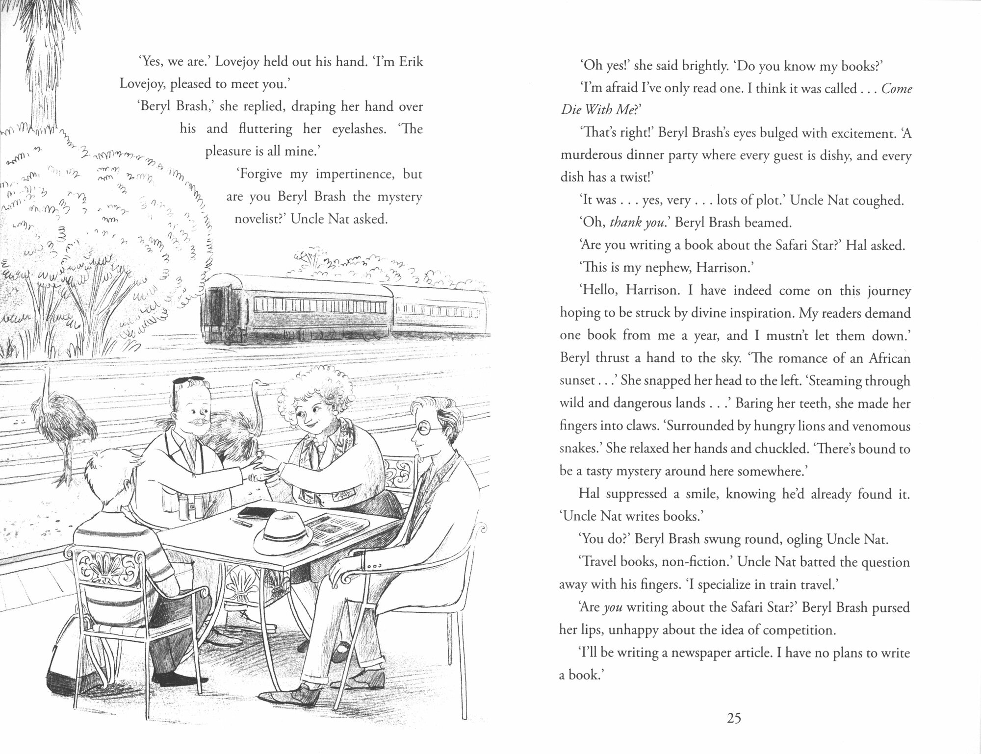 Harrison Beck and his Uncle Nat are on the journey of a lifetime aboard the Safari Star - a luxurious steam train that will take them from Pretoria to the stunning Victoria Falls. Close encounters with the amazing animals and landscape of Southern Africa are adventure enough, but things get mysterious when a passenger is found dead inside a locked compartment. Is it just a terrible accident or is something more suspicious afoot? It's up to train detective Hal and his new friend Winston to find out.
