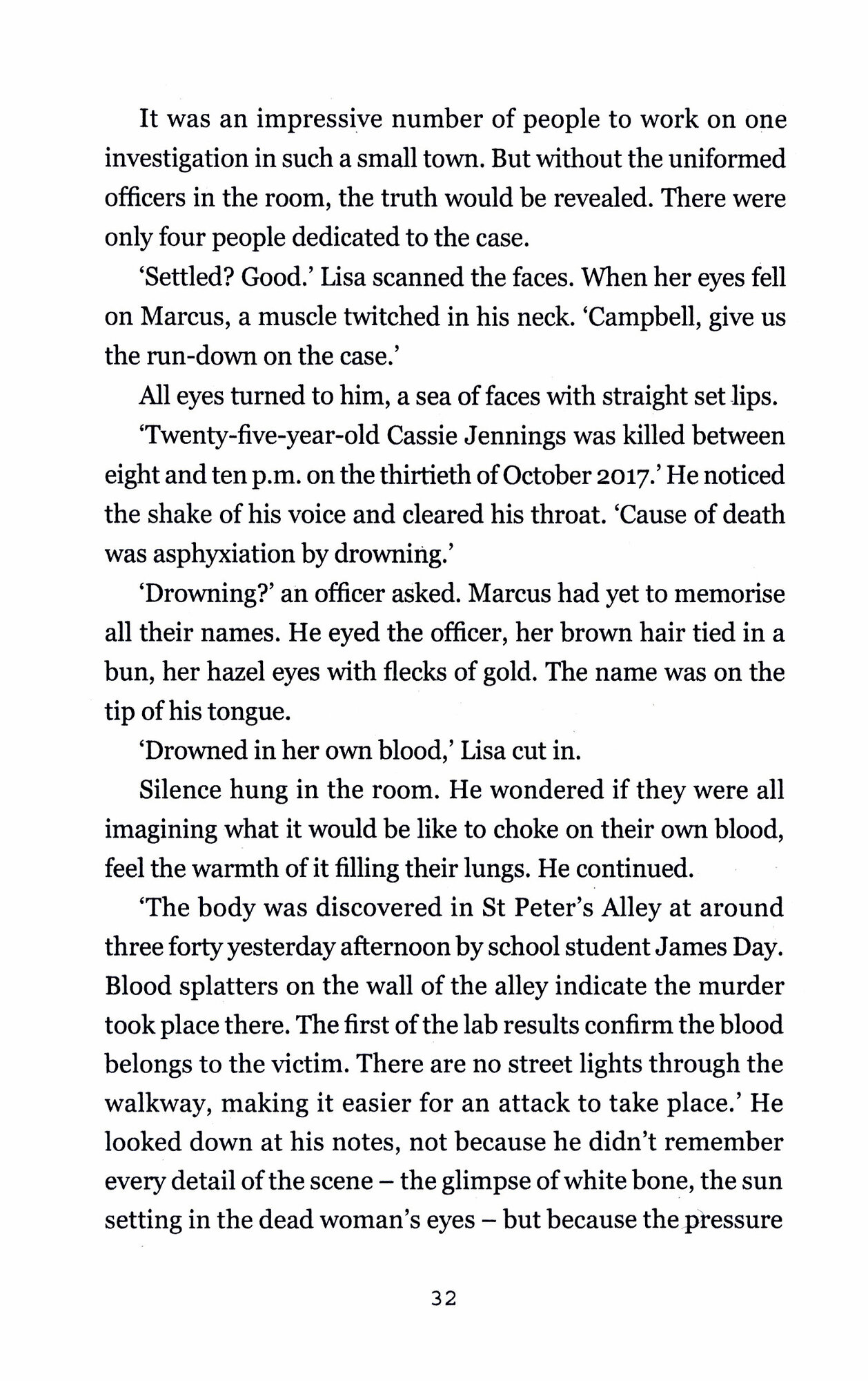 Naomi Hannah has been blind since birth. Struggling with living in a small, claustrophobic town, Naomi contemplates ending her life. But then she stumbles across the body of a young woman who has been brutally murdered. She senses someone else there at the scene - watching her. Naomi may not be able to see the killer's face, but she is still the only person who can identify him.