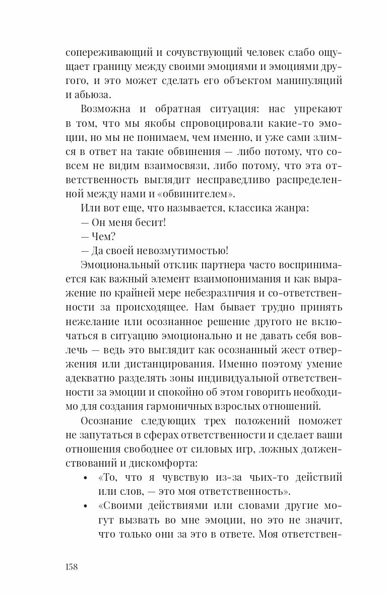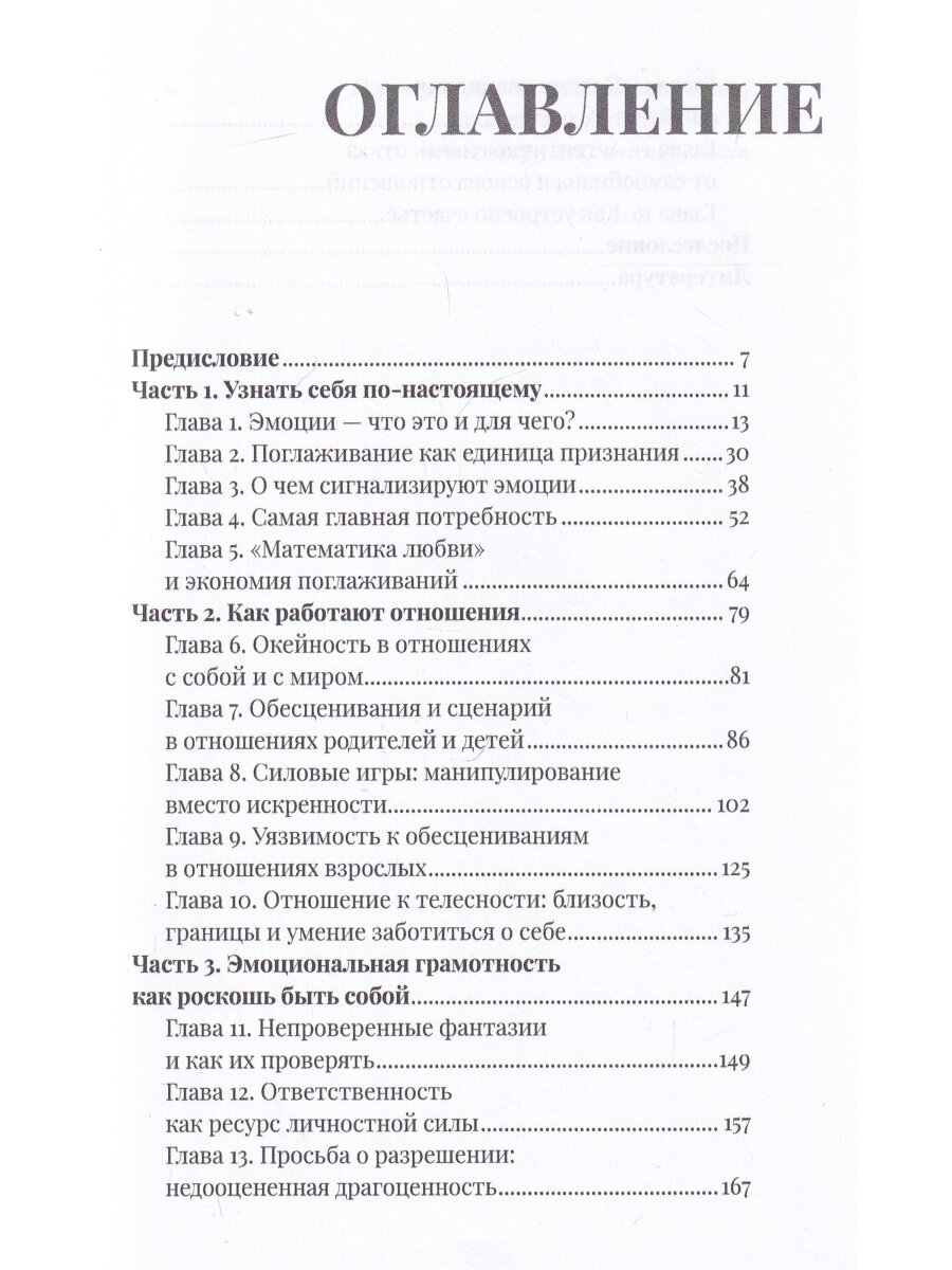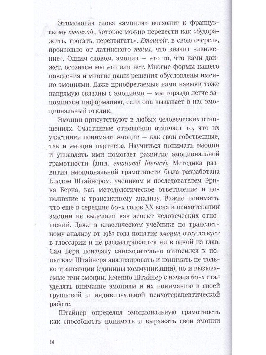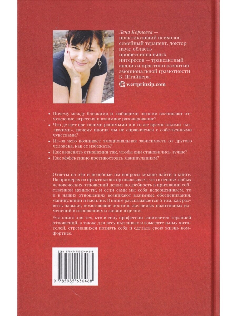 Автор рассказывает о важнейших аспектах отношений, опираясь на методы трансактного анализа и практики развития эмоциональной грамотности К. Штайнера, а также делится идеями, помогающими достигать позитивных изменений в отношениях и жизни в целом, подкрепляя их примерами из своей консультативной практики.