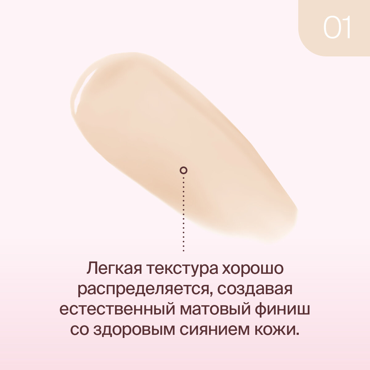 Лёгкая тональная основа, адаптирующаяся к тону кожи. Эффективно скрывает мелкие несовершенства, не создавая эффекта маски. Моментально улучшает внешний вид кожи, устраняет тусклость, уменьшает видимость пор. Отлично распределяется и не заметен на коже. Естественный матовый финиш и комфортная стойкость в течение всего дня.