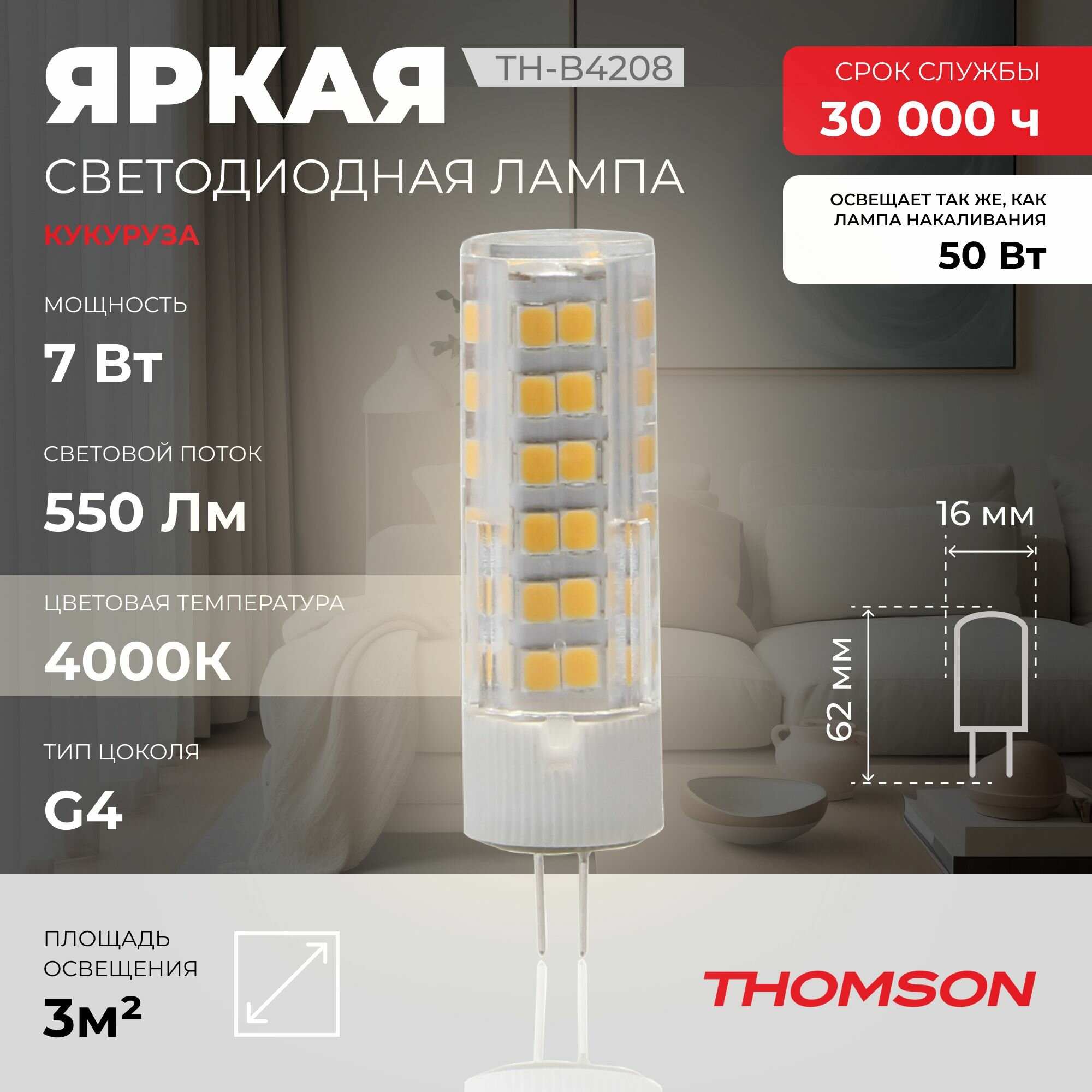 Модель: THOMSON LED G4 7W 550Lm 4000K TH-B4208