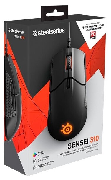 Sensei 310 продолжает легендарное наследние симметричных мышей SteelSeries. Используя уже хорошо зарекомендовавший себя симметричный корпус, Sensei 310 содержит множество технических улучшений. Оптический сенсор TrueMove3, силиконовые боковые вставки, раздельный дизайн кнопок, переключатели Omron с гарантированным ресурсом 50 млн нажатий, матовое покрытие,- все это впервые в Sensei 310. Чтобы мышь получилась очень легкой (весом всего 92.1 г), все материалы для Sensei 310 подбирались особенно тщательно с учетом их веса и прочности. Каждая деталь Sensei 310 соответствует самым высоким требованиям киберспортсменов. В зависимости от того, какой тип хвата вы предпочитаете, эта мышь предоставит вам полный комфорт даже при долгой игре. В то время, как большинство корпусов мышек сделаны из одной цельной части, Sensei 310 состоит из нескольких сегментов. Отделение кнопок от основного корпуса позволило достичь увеличенной скорости и отдачи при нажатии. Сохраняйте все настройки мыши и режим подсветки в памяти устройства. Мощный 32-битный ARM-процессор позволяет вам сохранять все настройки мышки и использовать ее на другом компьютере без установки дополнительного ПО.