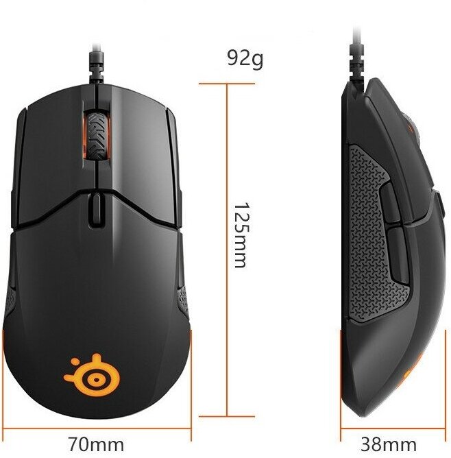 мышь среднего уровня, все сбалансировано, колесико удобно утоплено. Кнопки надежные, но довольно громкие, сравнивал с бюджетным манипулятором. Настройки сенсора и привязка кнопок происходит через утилиту SteelSeries Engine, скачивается на оф. сайте. Если у вас потеют руки, эта модель не для вас, силиконовые вставки по бокам становятся скользкими. Классно подходит для любых игр, где нужна точность, позволяет отследить цели на уровне пикселей. Мне зашла.