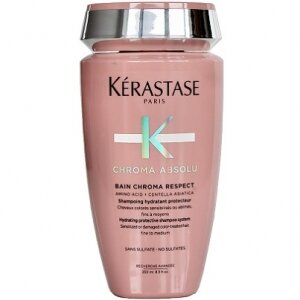 Bain Chroma Respect — это мягкий увлажняющий и защитный шампунь для всех типов сенсибилизированных или поврежденных окрашенных волос. Бледно-розовый кремообразный гель глубоко увлажняет волосы и ухаживает за ними, сохраняя цвет и предотвращая его потускнение. Инновационный шампунь, обогащенный высокоэффективным комплексом из аминокислоты и центеллы азиатской, проникает внутрь волос и делает их более сильными и упругими.