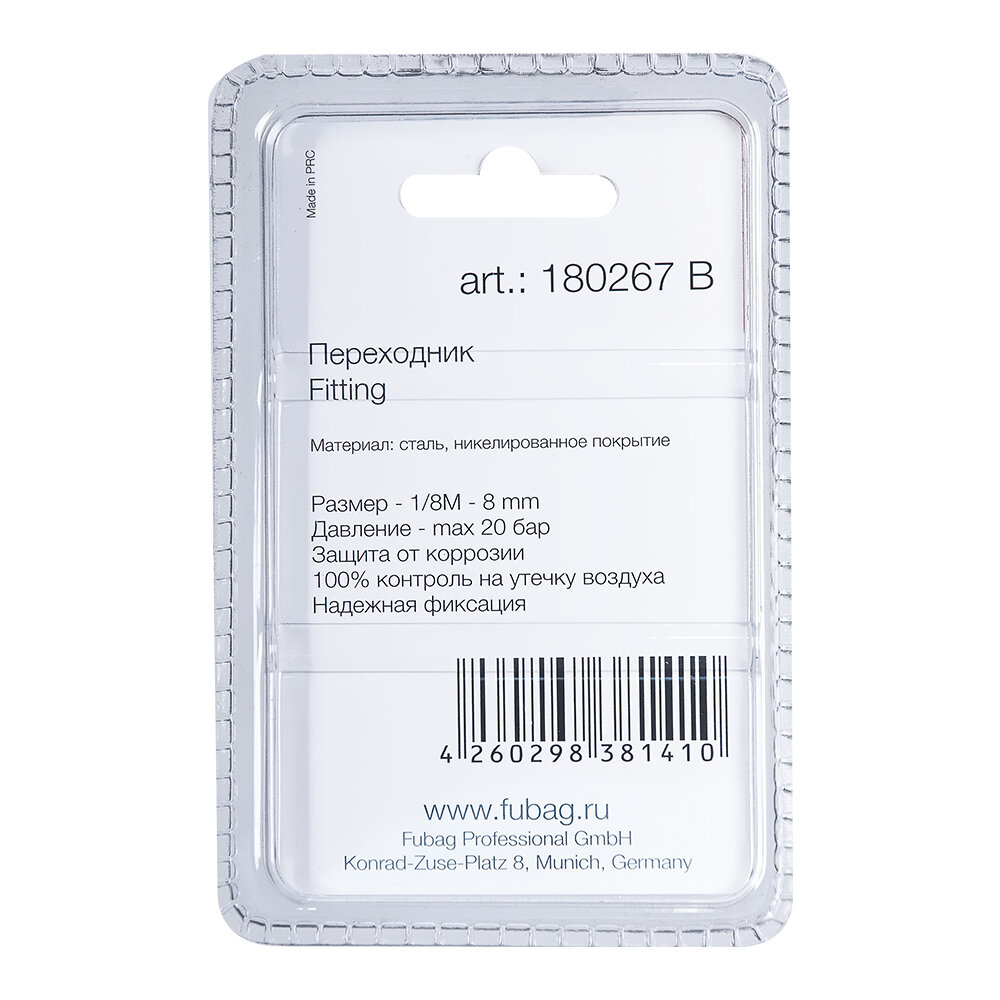 FUBAG Переходник 1/8"M на елочку 8мм с обжимным кольцом 8x13мм блистер 1 шт. 180267 B