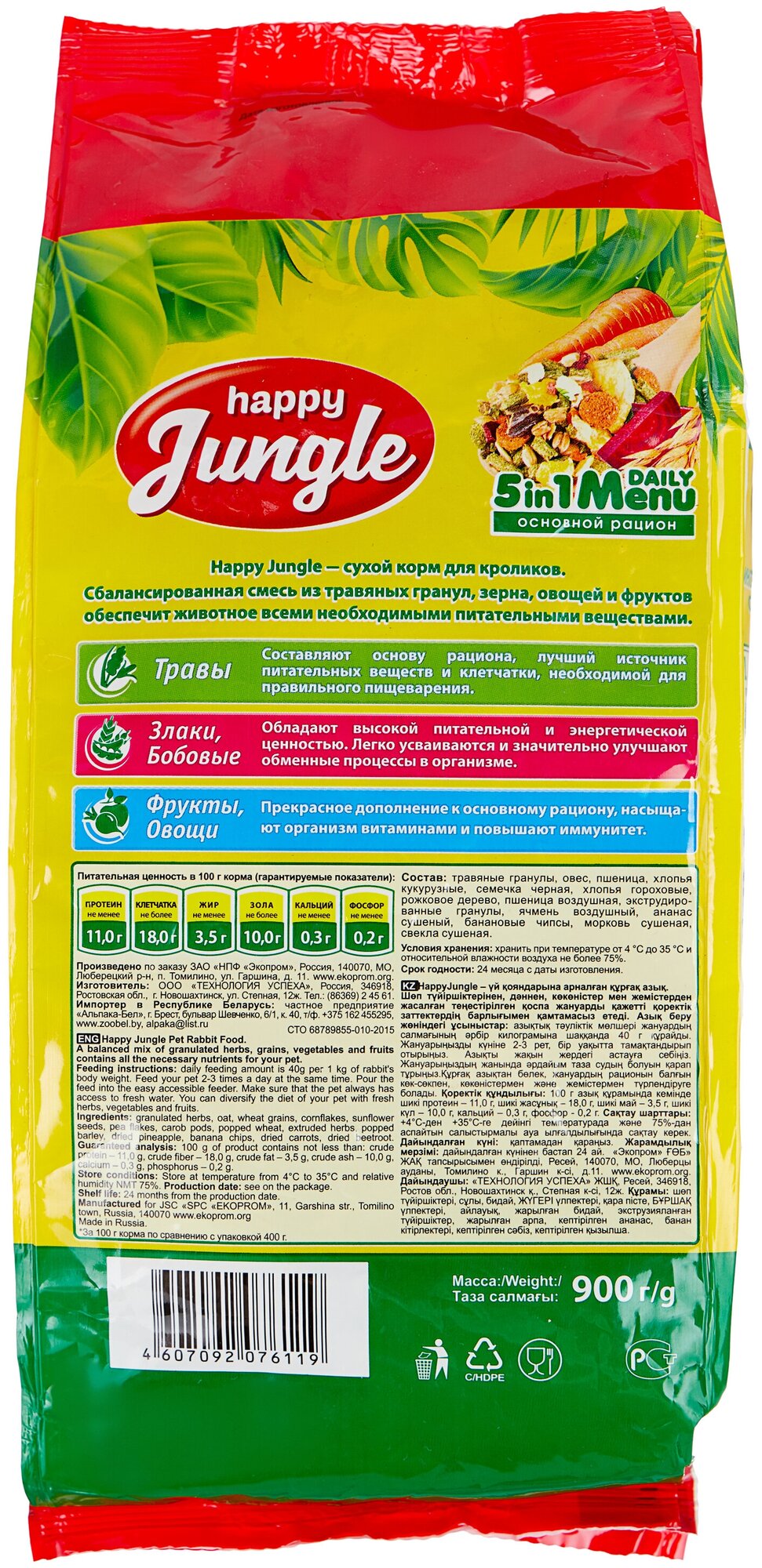 Рационы Happy Jungle сочетают в себе полезные и вкусные ингредиенты, необходимые для активной жизни питомца.