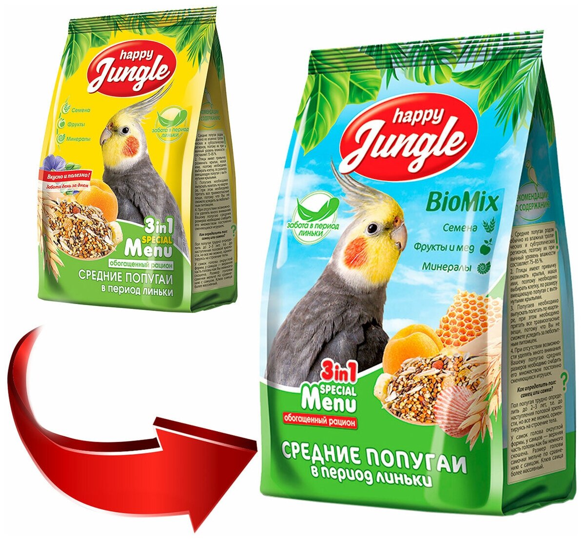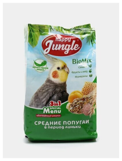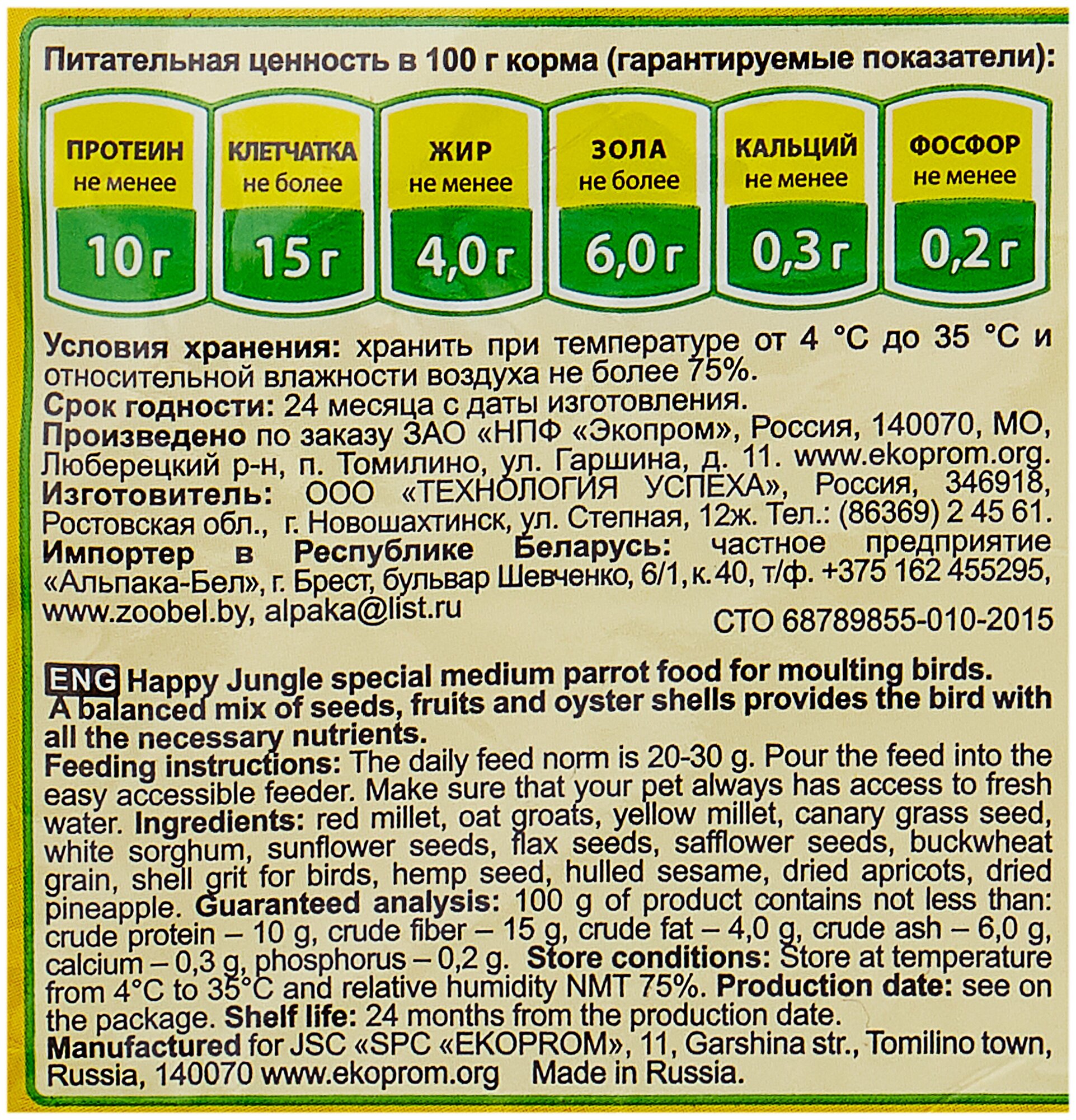 Сервис сравнения цен СкидкаГИД предлагает сравнить цены на товар «для средних попугаев при линьке 500г Happy Jungle»