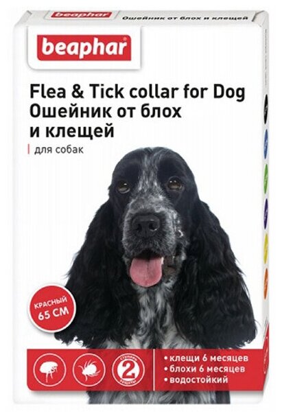 Ошейник от блох и клещей для собак с шестимесячного возраста. Цвет желтый. Уничтожает паразитов и защищает от повторного заражения блохами и клещами в течение 6 месяцев.Средство 2-й ступени комплексной программы Beaphar по защите от паразитов. Диазинон в составе ошейника обладает несистемным действием. Диазинон выделяется с поверхности ленты, переносится на кожно-волосяной покров животного и накапливается в эпидермисе, волосяных луковицах, сальных железах. Постепенно высвобождаясь на поверхность кожи вместе с секретом желез, диазинон оказывает контактное инсектоакарицидное и репеллентное действие на половозрелые и неполовозрелые фазы развития блох, вшей, власоедов и клещей, паразитирующих на животных. Механизм действия диазинона заключается в ингибировании активности холинэстеразы и стимуляции холинергических процессов в организме клещей, блох, вшей и др., в результате чего происходят паралич и гибель эктопаразитов.