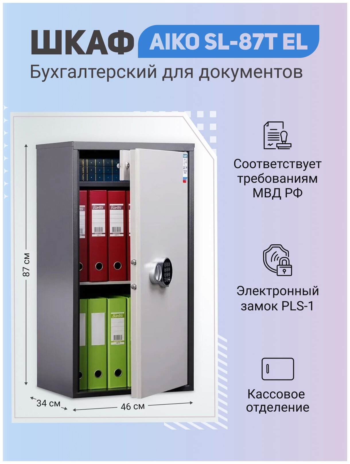 Шкаф бухгалтерский Aiko SL 87T-EL 870x460x340мм ключевой трейзер (S10799090902)
