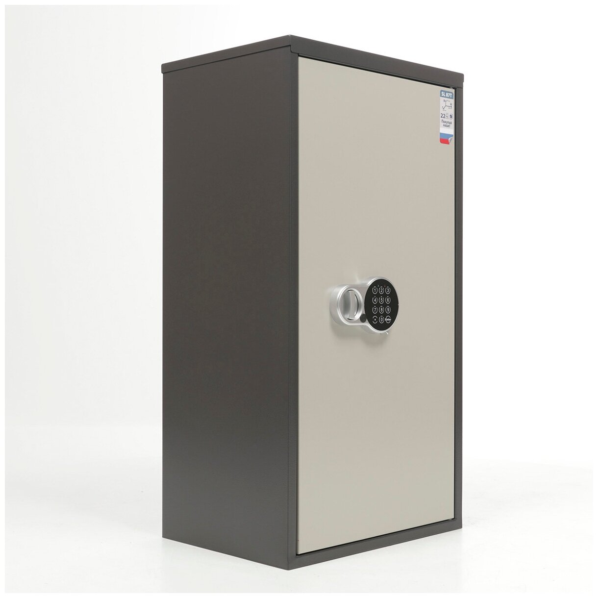 Aiko SL-87Т EL – офисный металлический шкаф, предназначенный для наиболее удобной организации хранения деловых документов, присутствующих в любом современном офисе. Шкаф характерен предельно демократичной ценой и высоким качеством исполнения, что делает его весьма привлекательным выбором на фоне прочей продукции данного типа. Качество шкафа гарантируется сертификатами соответствия ГОСТ 16371-93 и ТР ТС 025/2012 «О безопасности мебельной продукции». Шкаф Aiko SL-87Т EL – это прочное сварное изделие из стальных листов толщиной 1.2 мм. На дверь устанавливается электронный замок PLS-1 с возможностью аварийного открывания, для чего прилагается мастер-ключ. Для питания требуется четыре батарейки 1.5 В; имеется индикатор, уведомляющий о потере напряжения. В случае разрядки батарей код не меняется. Внутри модели SL-87Т EL расположено кассовое отделение со своим замком и вынимающаяся полка, которую можно передвигать по высоте с шагом 90 мм, позволяя распределить объём шкафа самым рациональным образом. В шкафу можно разместить десять папок-регистраторов (60 мм) формата А4 типа Корона, Bantex и так далее. Помимо функциональности, изделие обладает привлекательным внешним видом: светло-серое порошковое покрытие впишется в интерьер любого офиса, а также защитит поверхность от незначительных бытовых повреждений. Шкаф поставляется в собранном виде.