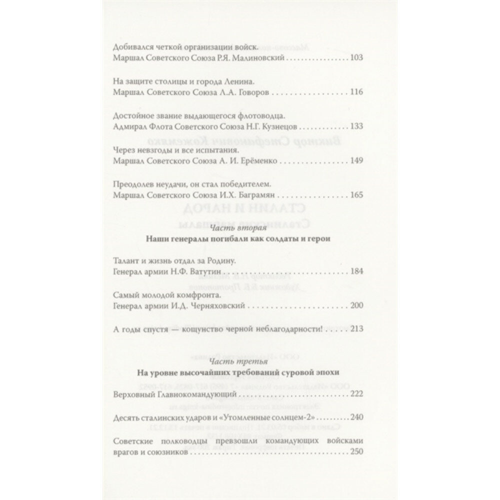 Эта книга о выдающихся советских полководцах Великой Отечественной войны, о крепости духа лучших сынов нашего народа, которые призваны были в труднейшее время возглавить ряды Красной армии в ее судьбоносной битве с захватчиками невиданной ранее силы, о высоком воинском искусстве и освоении науки побеждать, завещанной соотечественникам великим Суворовым. Напряженная работа на пределе физических и интеллектуальных сил, бессонные ночи, коллегиальная выработка единственно верных решений... - полководцам было на кого равняться: Верховный Главнокомандующий, Председатель ГКО И.В. Сталин с первых дней войны взял на себя общее руководство в полной мере - и забывать об этом, как и о подвиге миллионов рядовых красноармейцев и командиров, недопустимо. Мы должны знать, помнить, чтить и всеми силами защищать от черных наветов тех, кто вел наши войска к Великой Победе!