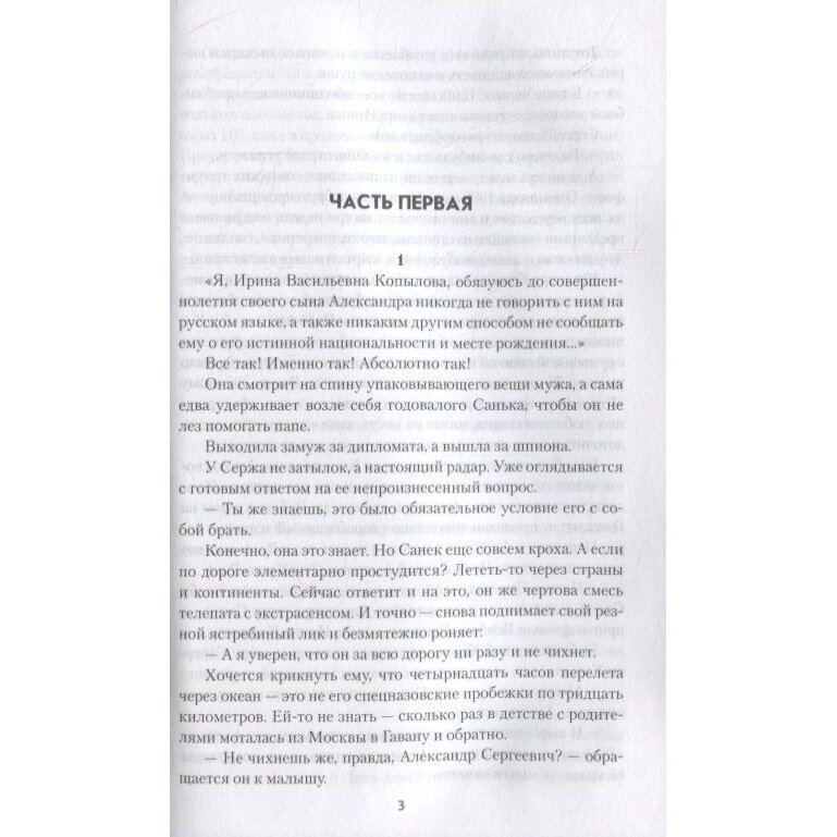 Ему исполнилось тринадцать лет, когда погибли его родители и Санька узнал, что те были вовсе не простыми коста-риканскими гражданами, а российскими шпионами. Вывезенный нелегально в Москву, он попадает в закрытую школу-интернат для детей разведчиков, мечтая вернуться на Запад. Но лето, проведенное в деревне у родной бабушки, смягчает его характер. Шесть лет спустя Александр уже студент одного из московских вузов. Он упорно отказывается стать рыцарем плаща и кинжала. Но сила обстоятельств ставит его перед выбором: смерть от идущих по пятам оборотней в погонах или государева служба и новая жизнь под другой фамилией…