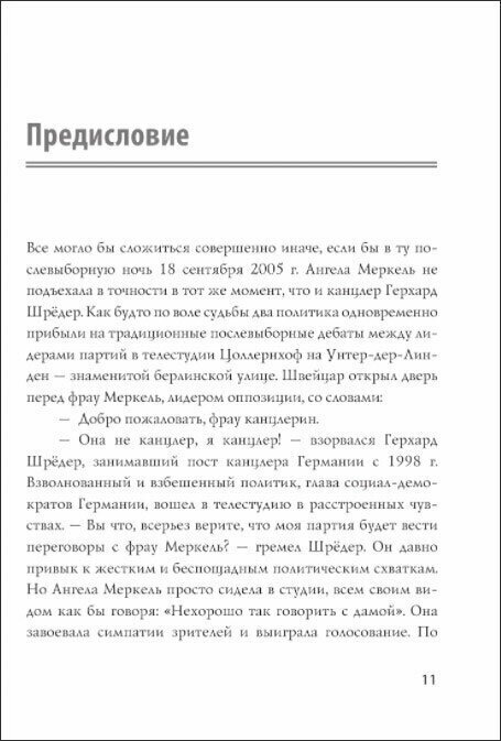 Политикой особо не интересуюсь, но эта книга - исключение. Довольно легко читается, хотя много внимания уделяется непростым политическим вопросам: о власти в ГДР, об объединении Германии и политической жизни страны до 2016 года. Всё рассказывается довольно подробно, поэтому трудности при чтении не возникали. Конечно, у автора свой взгляд на построение социализма в ГДР, где жила Меркель, но к этому нужно быть готовым, читая книгу европейского журналиста и политического обозревателя. ) Зато интересно рассказывается о корнях Меркель, ее родителях, учебе в школе. Это не просто рассказ, а погружение в то время. Можно много узнать о стране, быте. Еще порадовало, что автор приводит цитаты Меркель, так что его рассказ не выглядит голословным.
