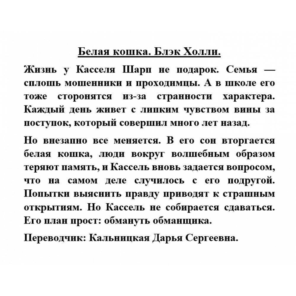 На сегодняшний день товар «Книга: Белая кошка (Блэк Холли); ООО "Издательство Астрель", 2022» можно купить с кешбеком в 4 магазинах: book24, Буквоед, Читай-город, Onliner BY