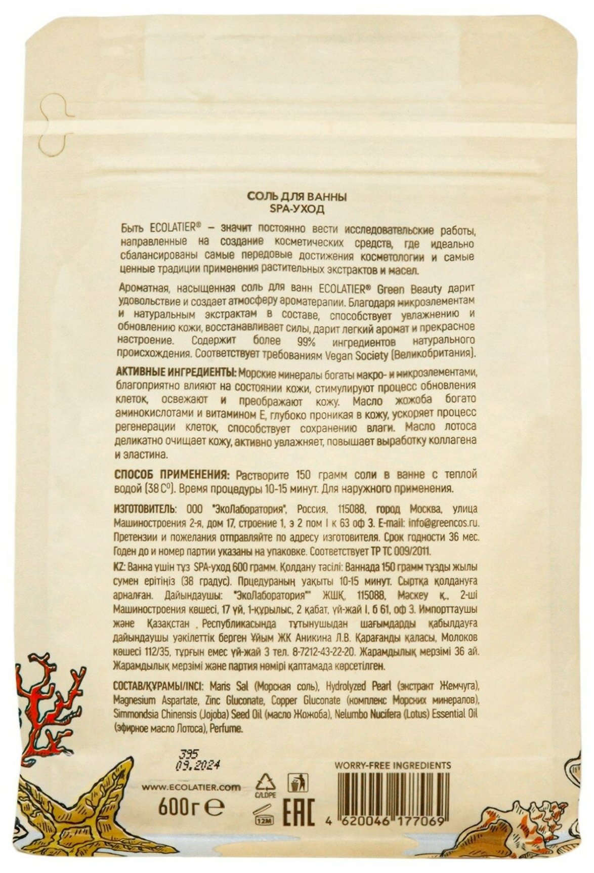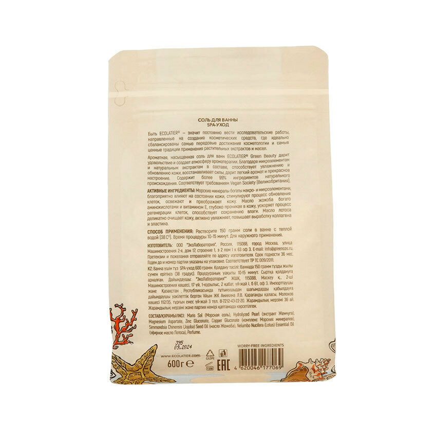 | Полное наименование | Ароматная, насыщенная соль для ванн ECOLATIER Green Beauty |
