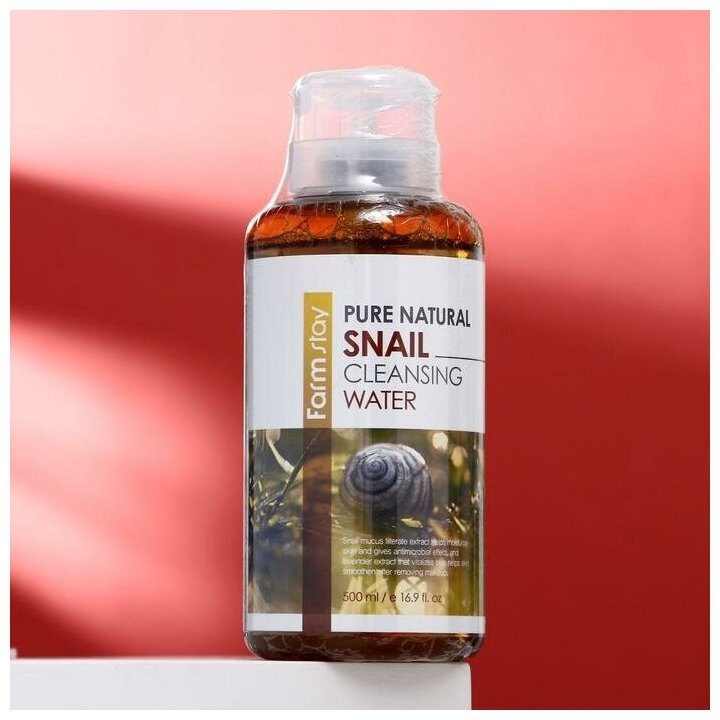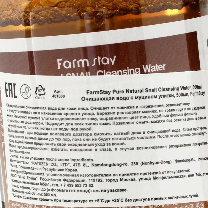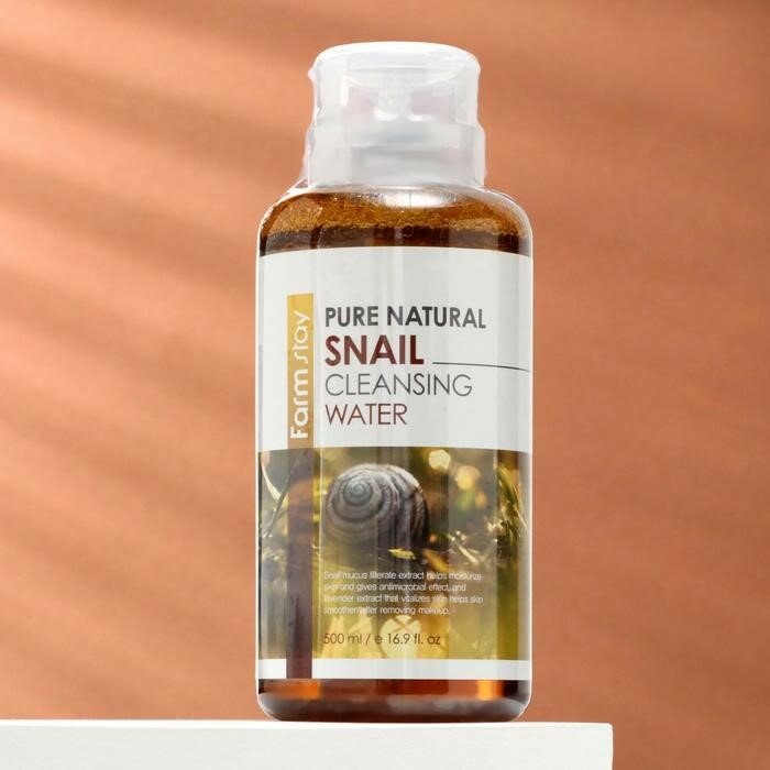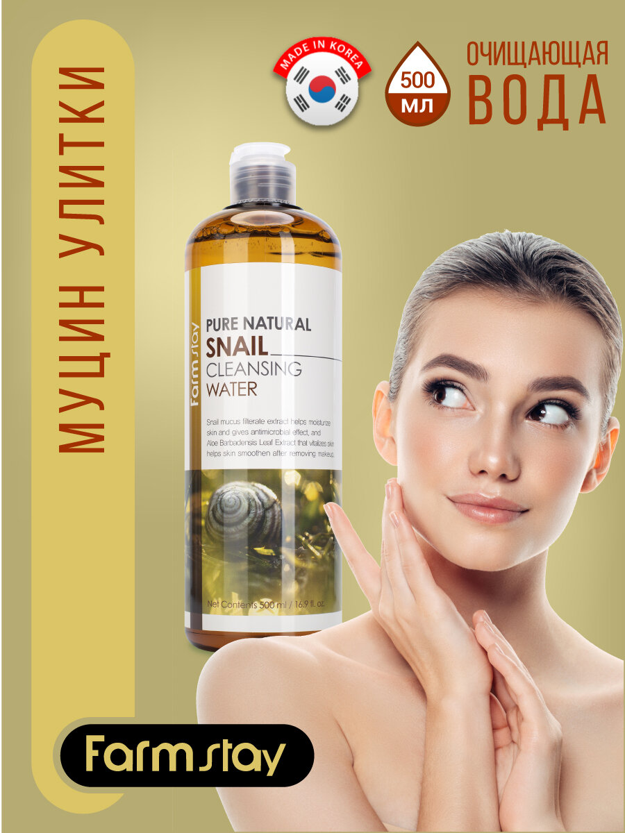 Farm Stay Pure Natural Snail Cleansing Water – косметическое средство, предназначенное для бережного очищения кожи лица. Средство содержит муцин улитки, который глубоко увлажняет и омолаживает кожный покров.Очищающая вода с муцином улитки Pure Natural Snail Cleansing Water предназначена для бережного и эффективного удаления с поверхности кожи любых загрязнений (пыли, остатков косметики и лишнего себума). Косметическая вода эффективно отшелушивает ороговевшие клетки, тонизирует и освежает кожу, преображая ее внешний вид. Слизь улитки, в составе средства, мягко отбеливает кожу, насыщает клетки влагой, запускает важные регенеративные процессы, продуцирует выработку собственного эластина, благодаря чему кожа выглядит более молодой и упругой. Преимущества Pure Natural Snail Cleansing Water Вода с легкой, практически невесомой текстурой, быстро впитывается в кожу, не создавая ощущение стянутости и жирности.Идеально сочетается с европейскими гелями для умывания и косметическими тониками.Подходит для кожи любого типа, включая чувствительную.Натуральные составляющие мягко воздействуют на кожу, минимизируя риск появления аллергических реакций.Оптимизирует микрофлору, останавливая рост патогенных микроорганизмов, устраняя основную причину появления угревой сыпи и черных точек. Ключевые компоненты Муцин улитки – уменьшает количество и степень выраженности морщин, активизирует процессы кожной регенерации, осветляет пигментные пятна, эффективно подтягивает и омолаживает кожу. Экстракт лаванды – снимает раздражения и останавливает воспалительные процессы, имеет успокаивающие и антибактериальные свойства. Экстракт ромашки – подавляет рост вредных микроорганизмов, убирает болевой синдром и регулирует гидробаланс кожи. Экстракт розмарина – мягко подтягивает овал лица, маскирует шрамы и следы постакне.Купить очищающую воду с муцином улитки Farm Stay Pure Natural Snail Cleansing Water вы можете в нашем интернет-магазине не выходя из дома, по самой привлекательной цене.