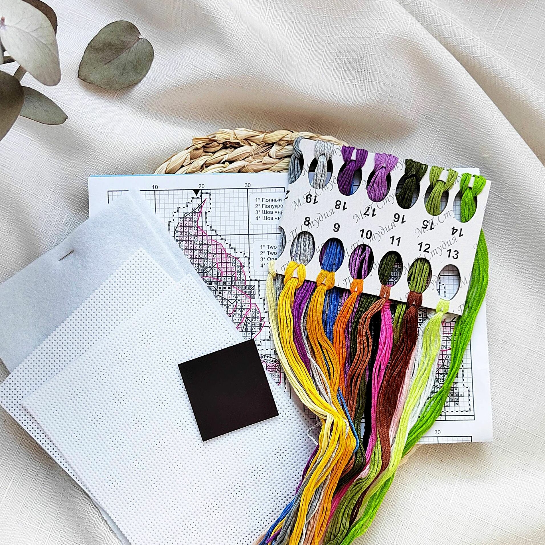 | В набор входит | канва пластиковая Аида №14, нитки мулине 23 цветов, разобранные на органайзере, магнитное полотно, фетр, игла, схема и руководство по вышиванию |
