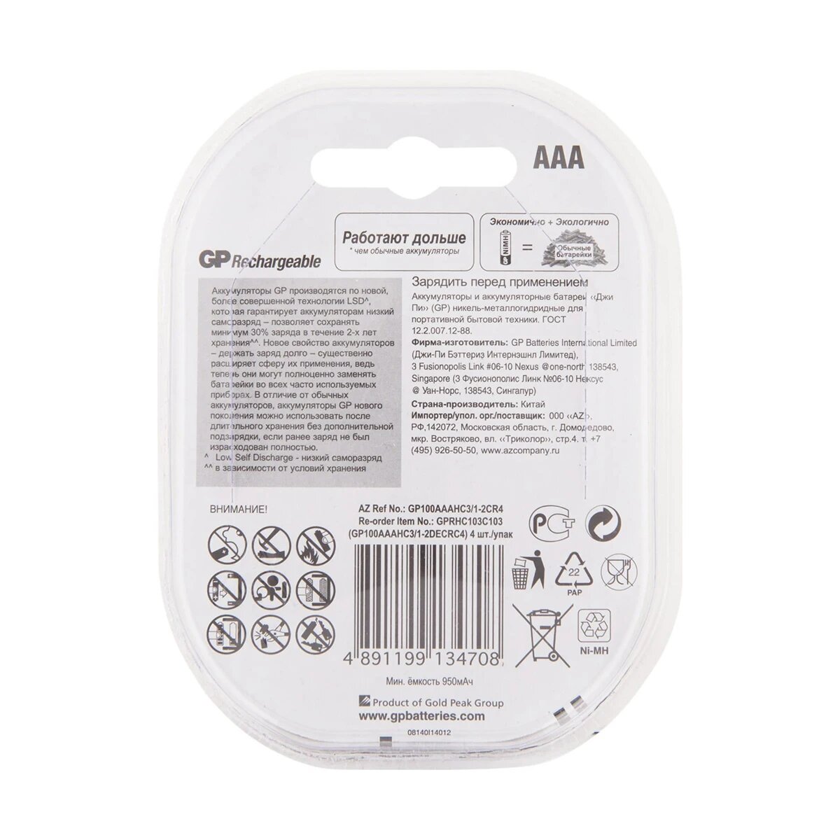 AAA Аккумулятор GP 100AAAHC3/1 4 шт. 1000мAч 100AAAHC3/1-5CR4